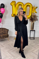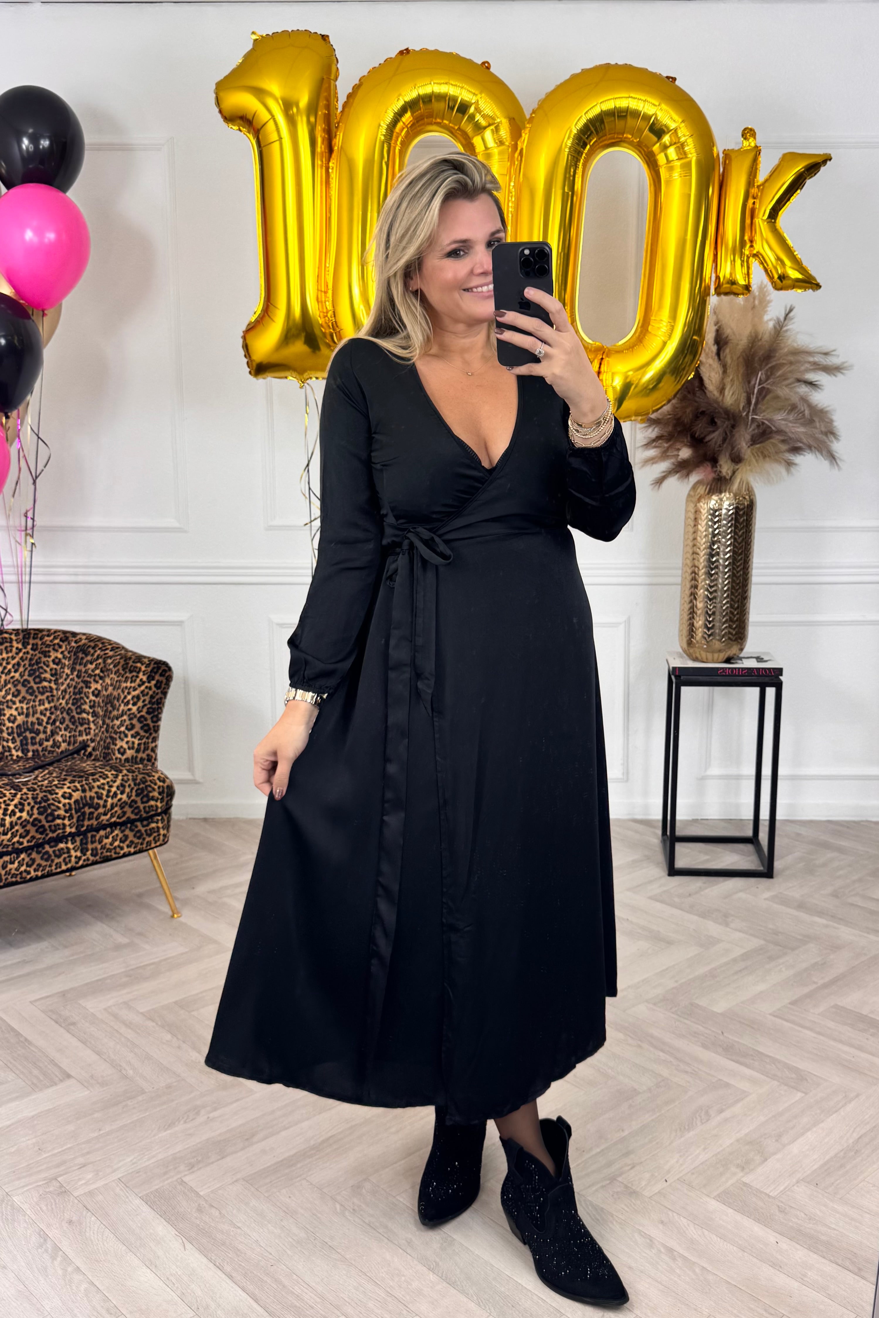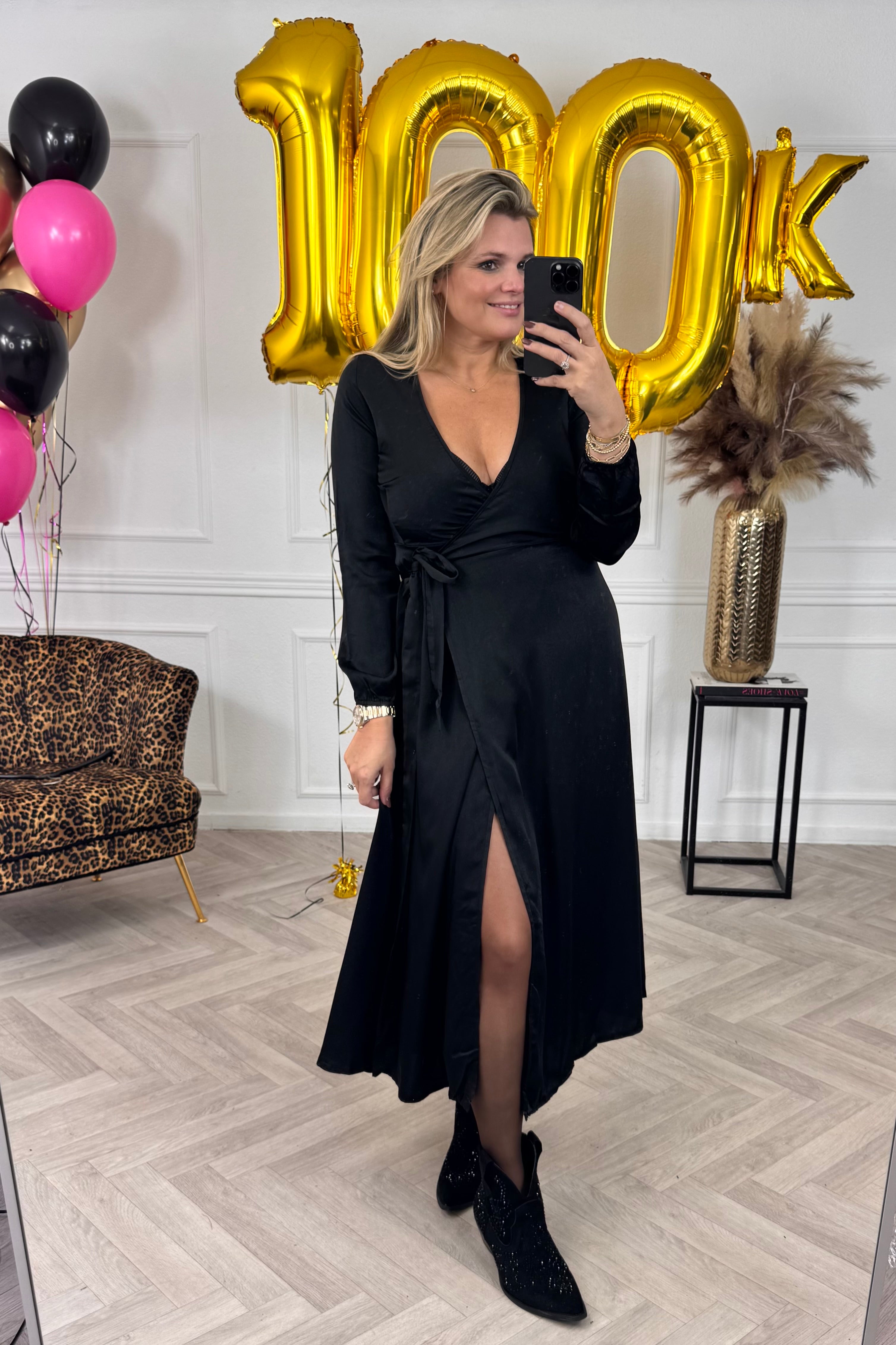 Wat een elegante jurk is dit! En fantastisch om overal naartoe te dragen! Shop de maxi silk wrap dress nu in black.
