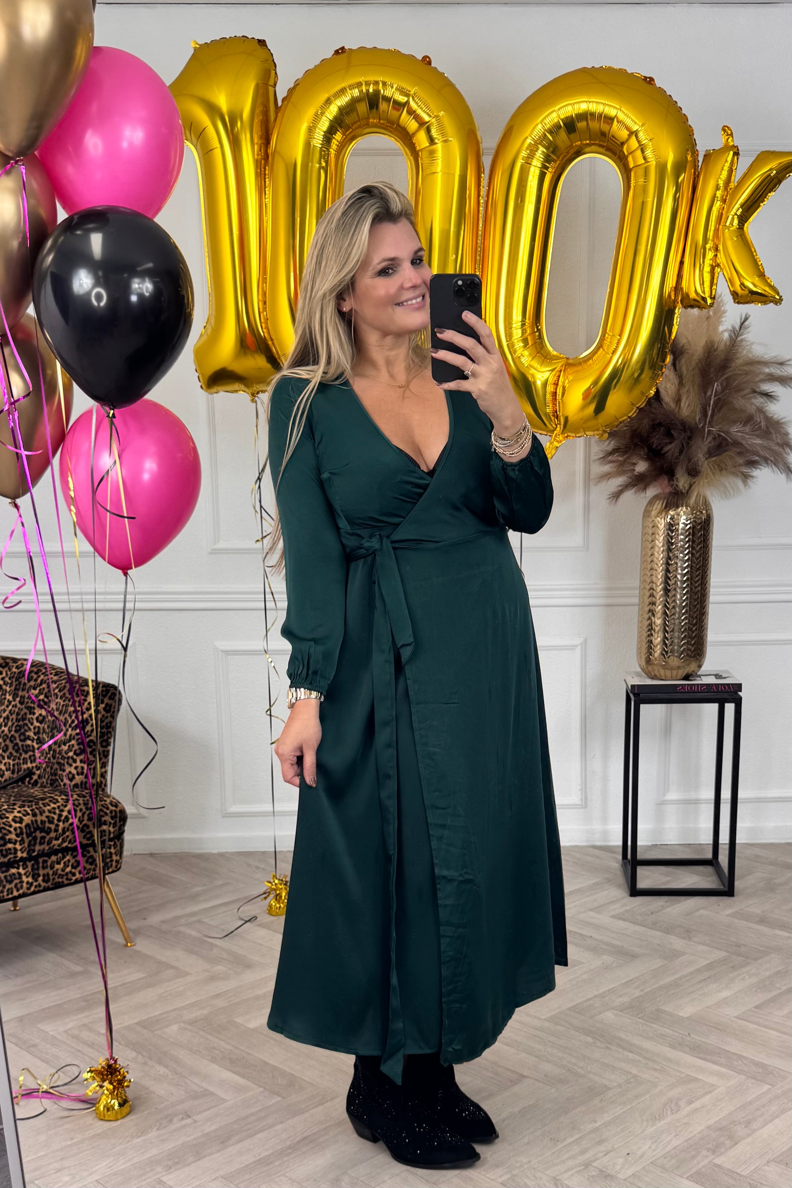 Wat een elegante jurk is dit! En fantastisch om overal naartoe te dragen! Shop de maxi silk wrap dress nu in green.