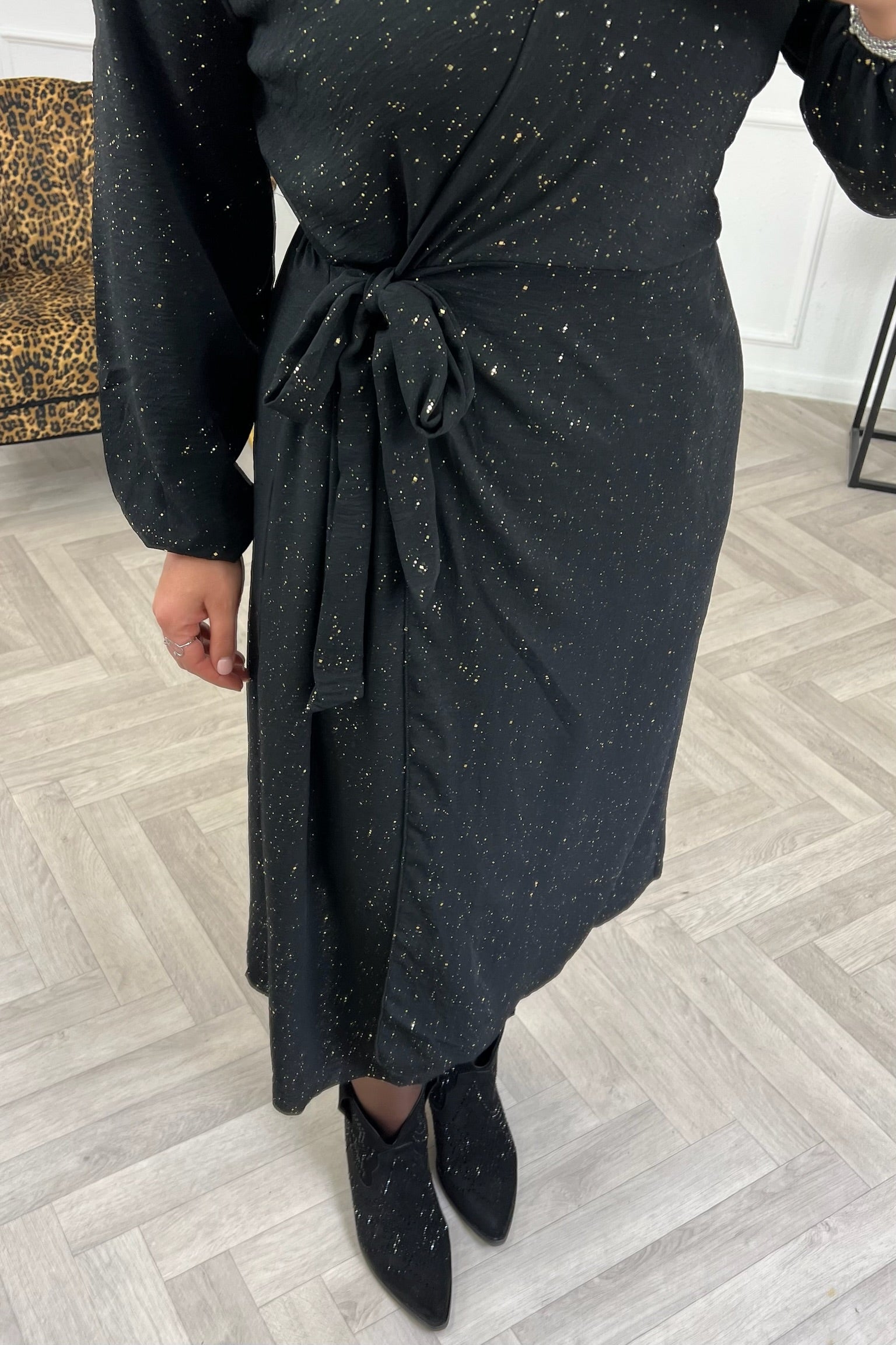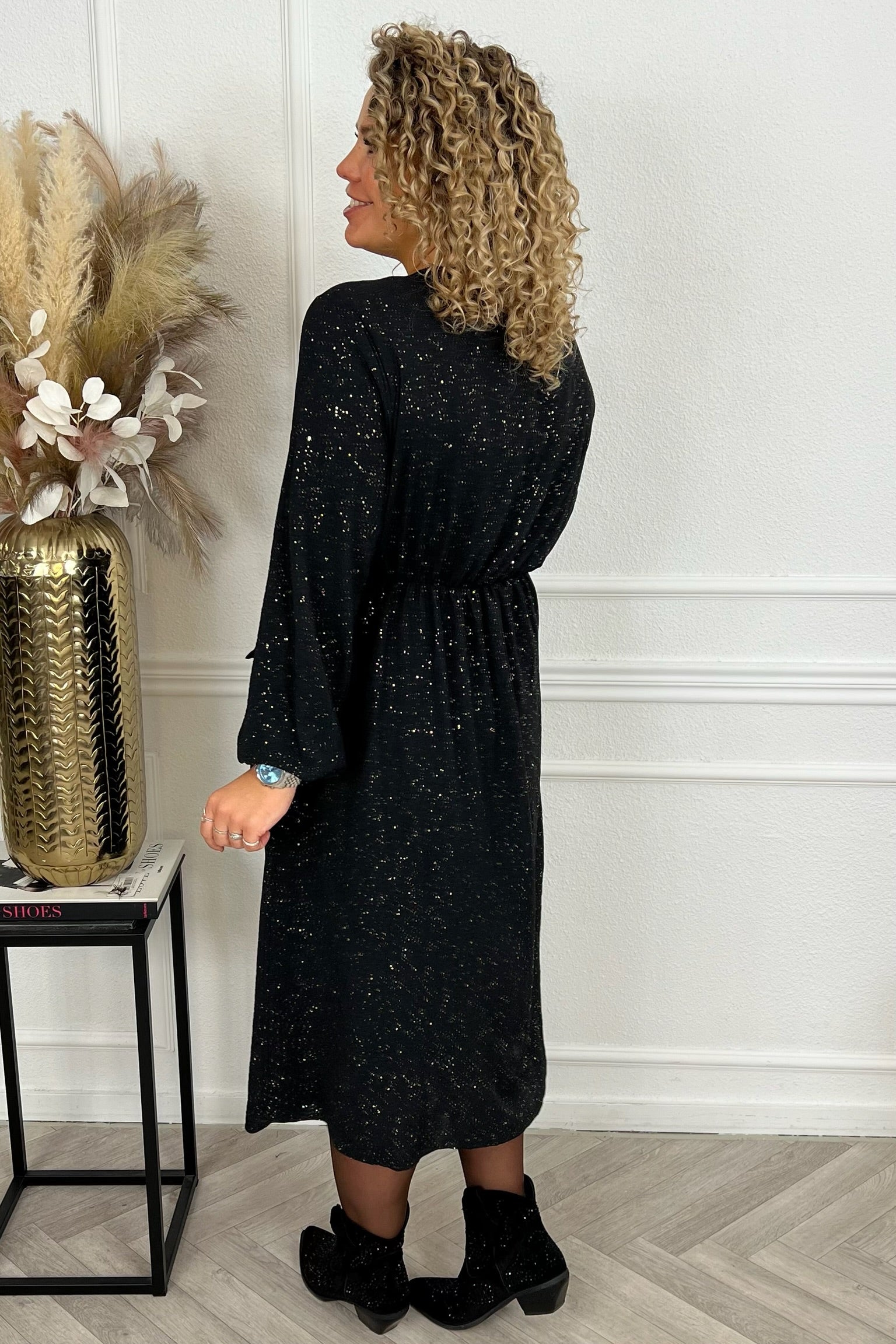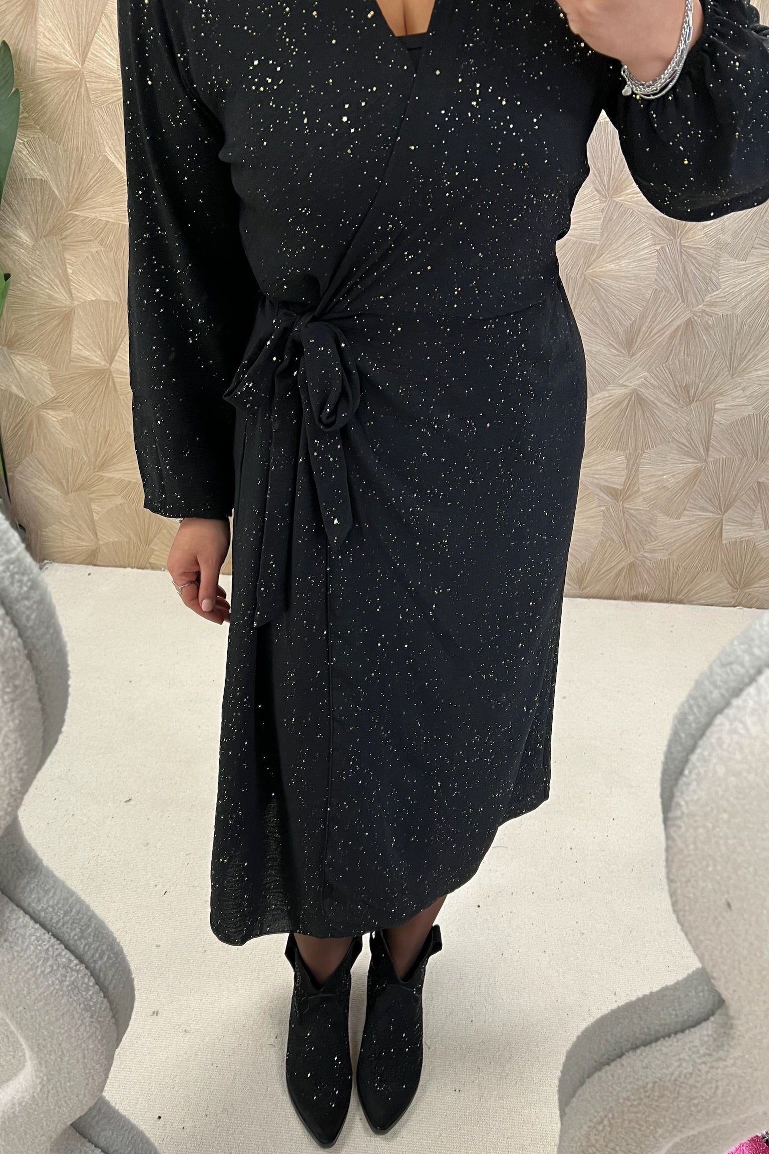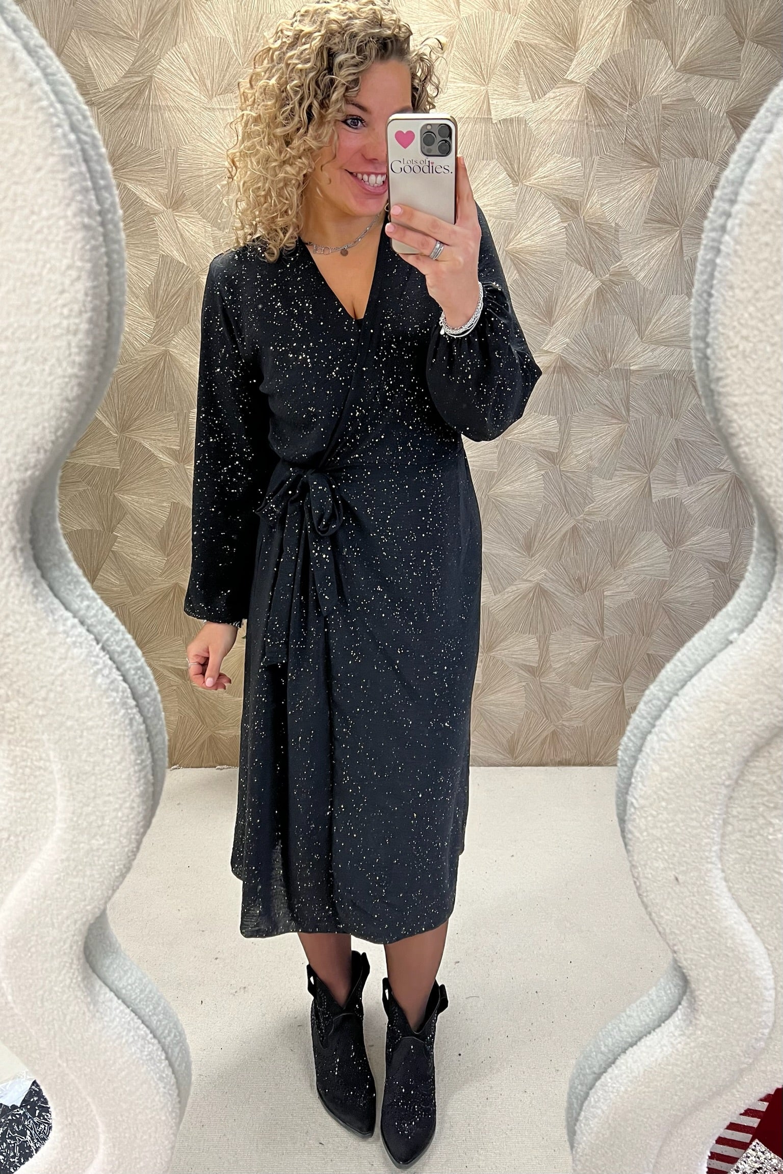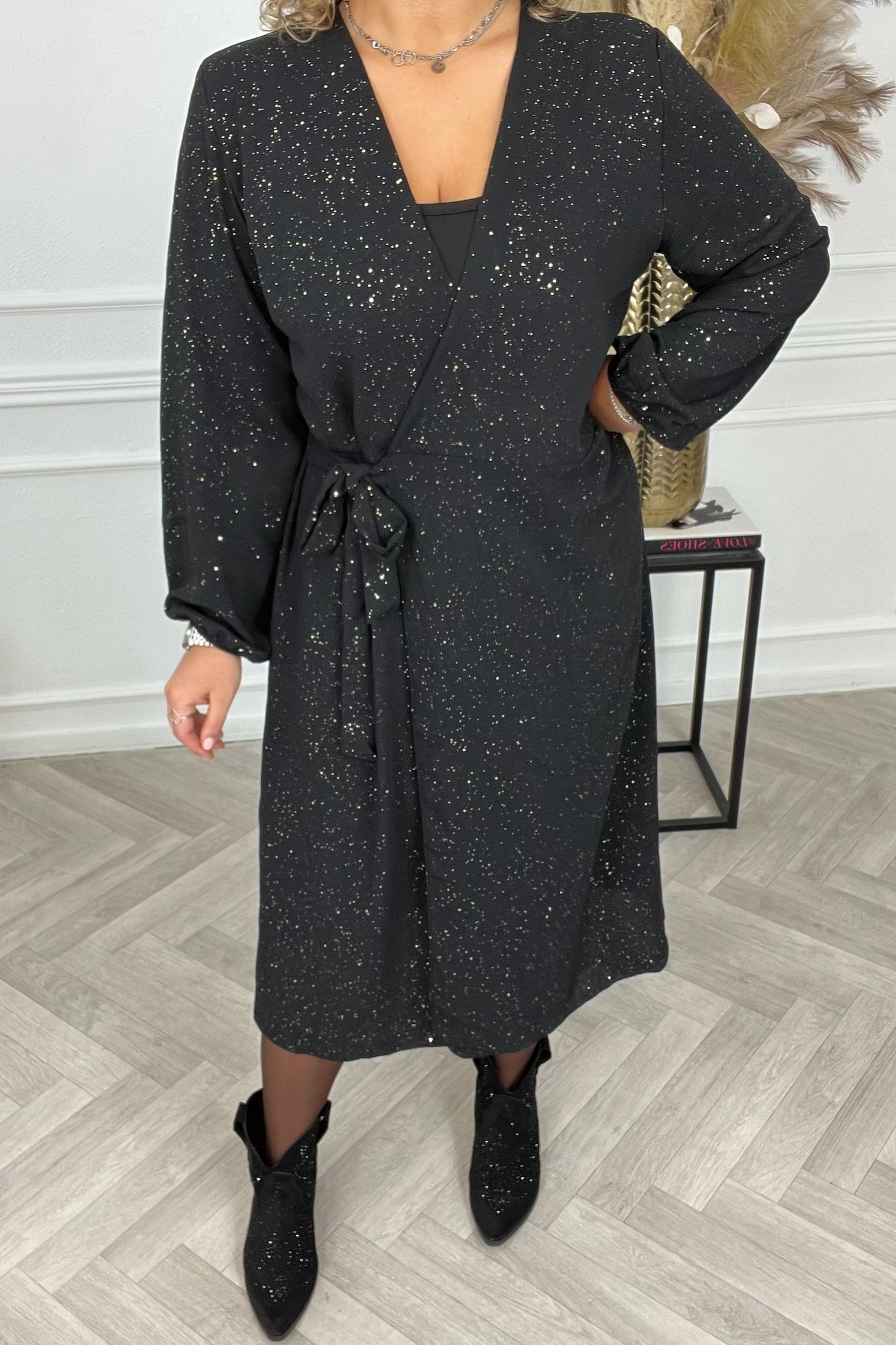 Onze populaire en supermooie Sparkle Wrap Dress nu ook in maxi variant! Shop hem nu in black one size (38-46).