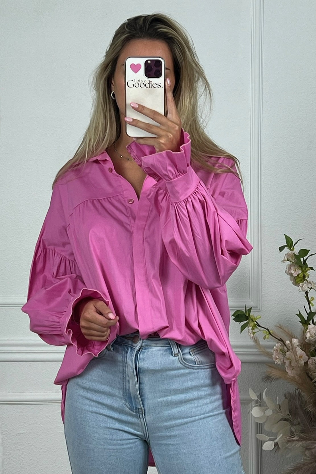 Deze blouse heeft een leuk ruffle detail en fijne lange mouwen! Shop hem in pink!