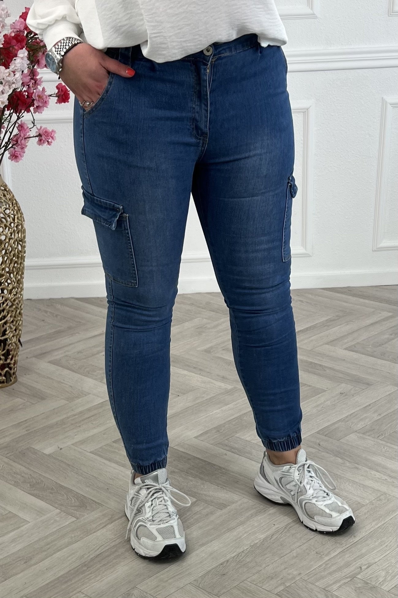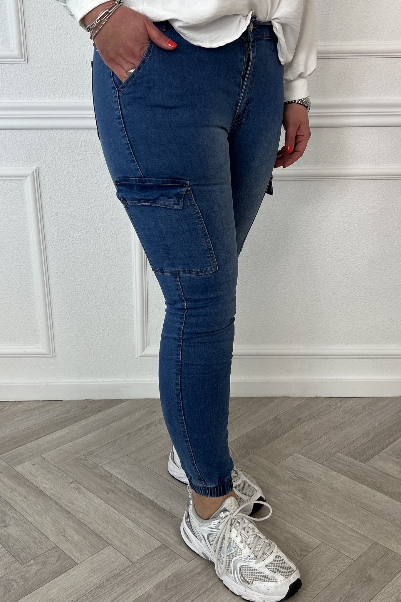 We are in love! We hebben de trendy cargo pants nu van een denim stofje en elastiek bij de enkel!