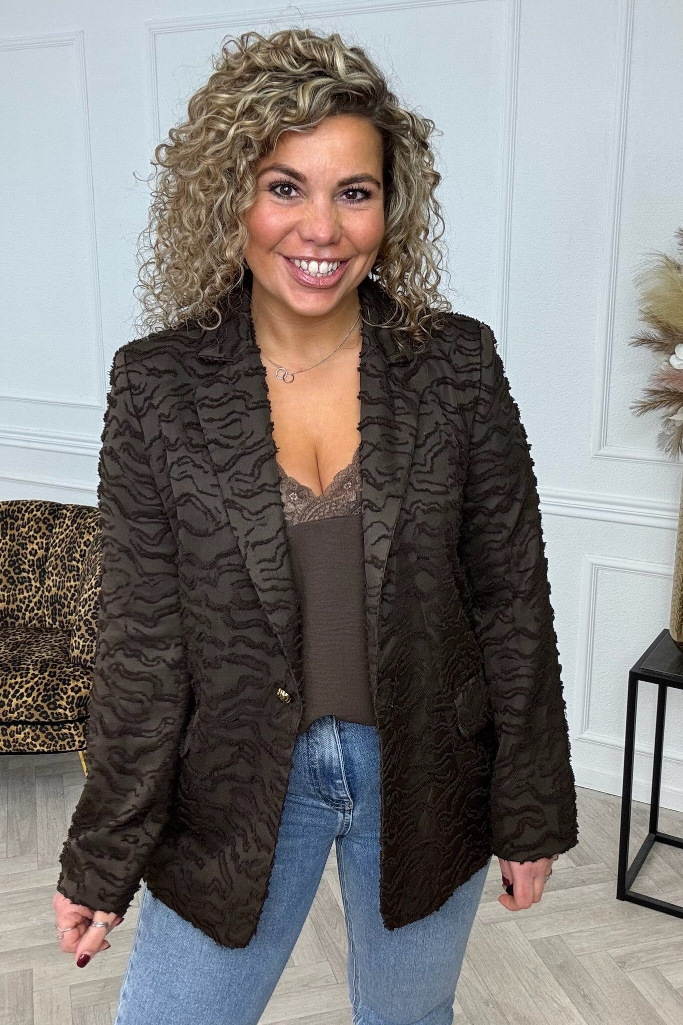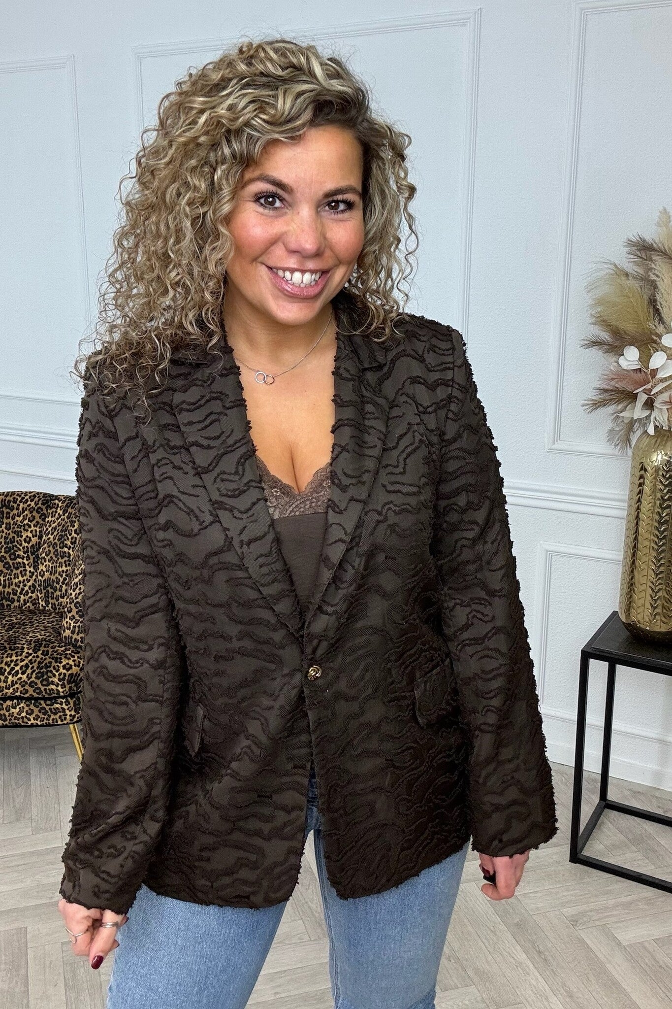 Je shopt deze heerlijke Ambika blazer, met gouden knoop Gemaakt van mooie jacquardstof shop hem in brown.