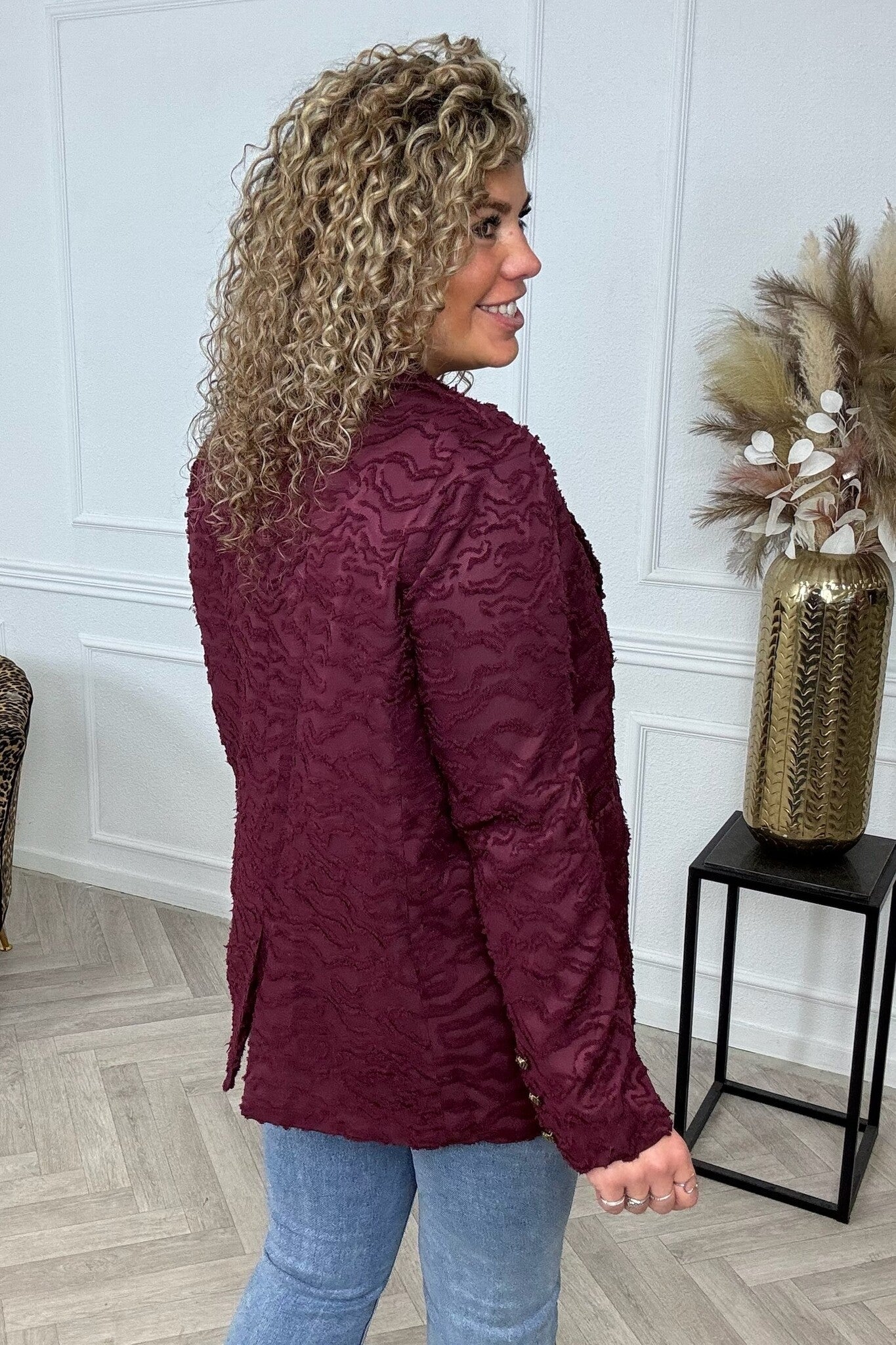 Je shopt deze heerlijke Ambika blazer, met gouden knoop Gemaakt van mooie jacquardstof shop hem in burgundy.