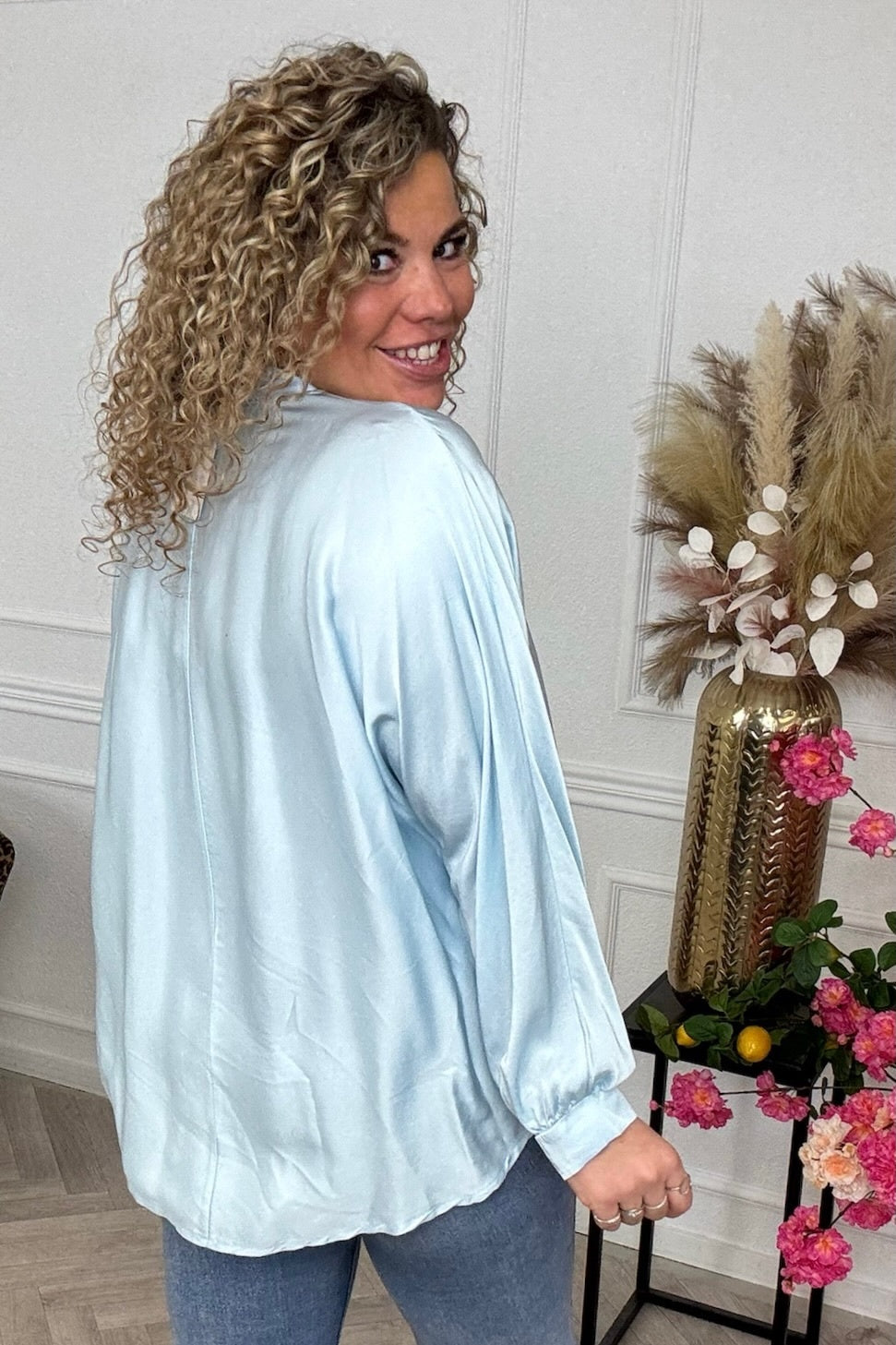 We zijn gek op deze classy blouse met het leuke kraagje en lange mouwen. Shop hem nu in light blue.