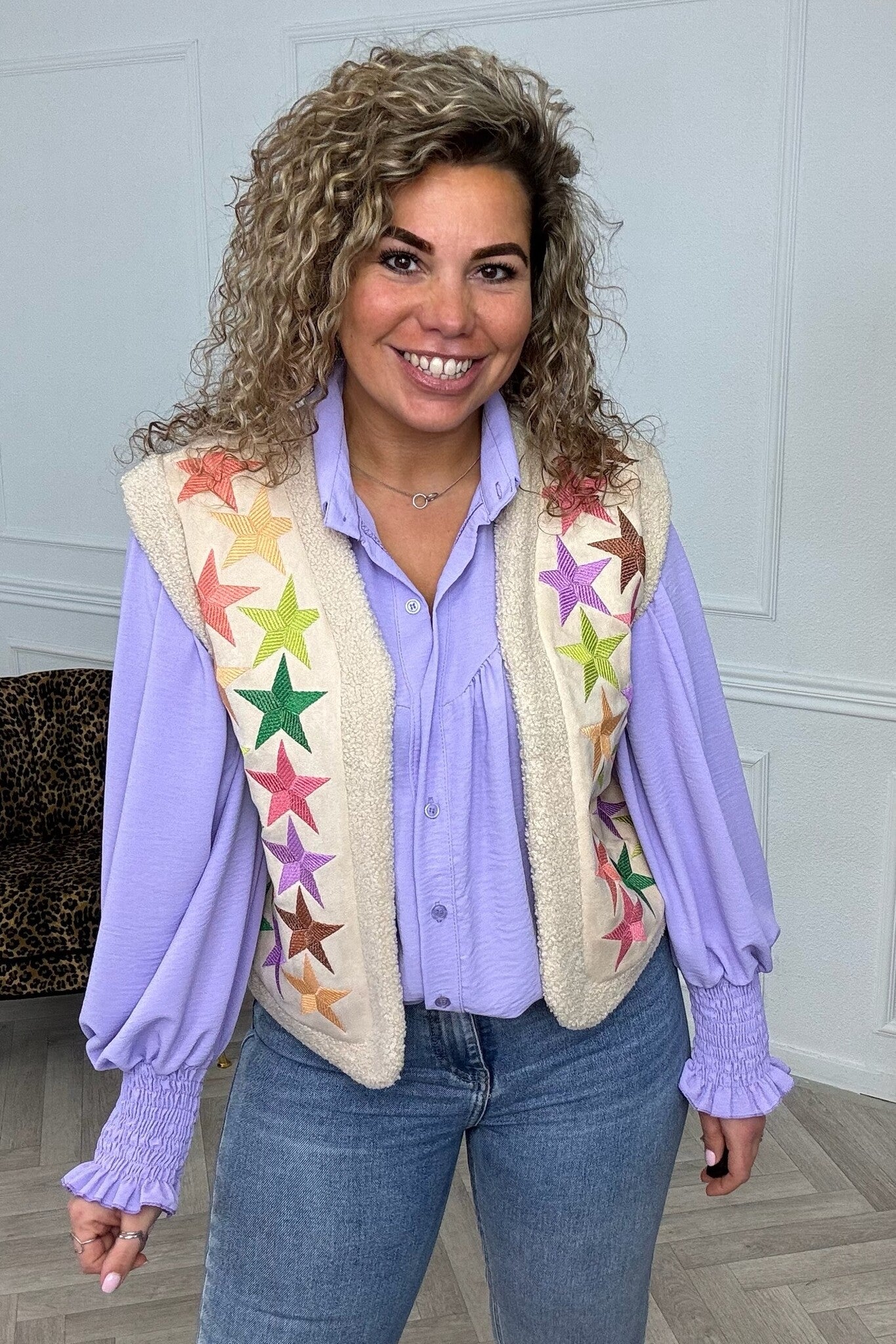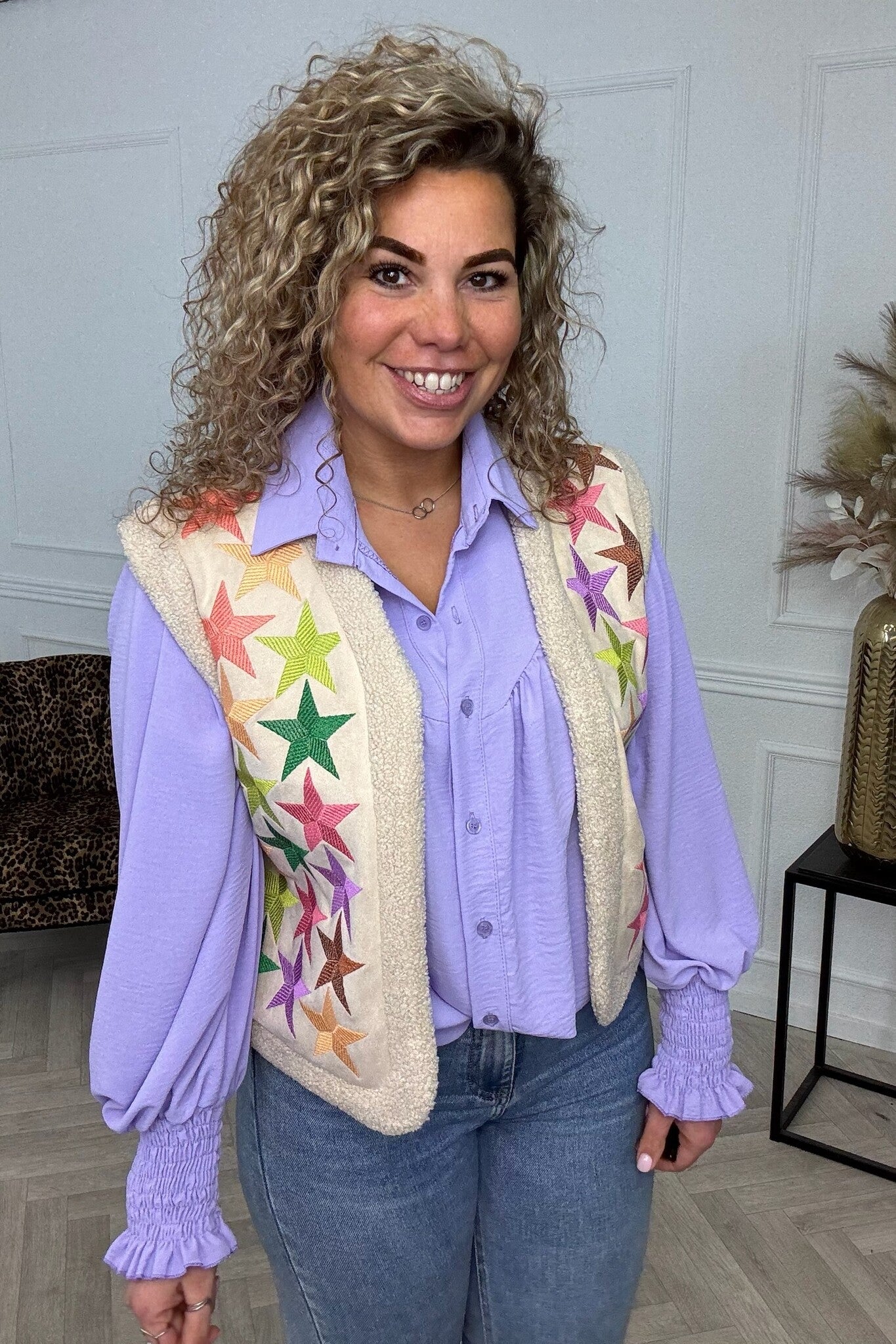 Shop dit prachtige gilet en style je outfit helemaal af! Helemaal on trend! Shop hem in beige met mooie gekleurde sterren!