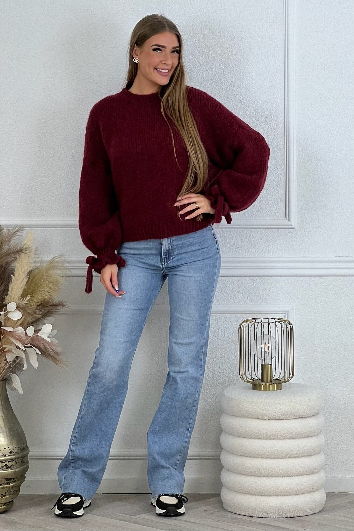 We hebben weer een heerlijke sweater binnen, met superleuke strikjes om de mouwen! Shop hem in burgundy!