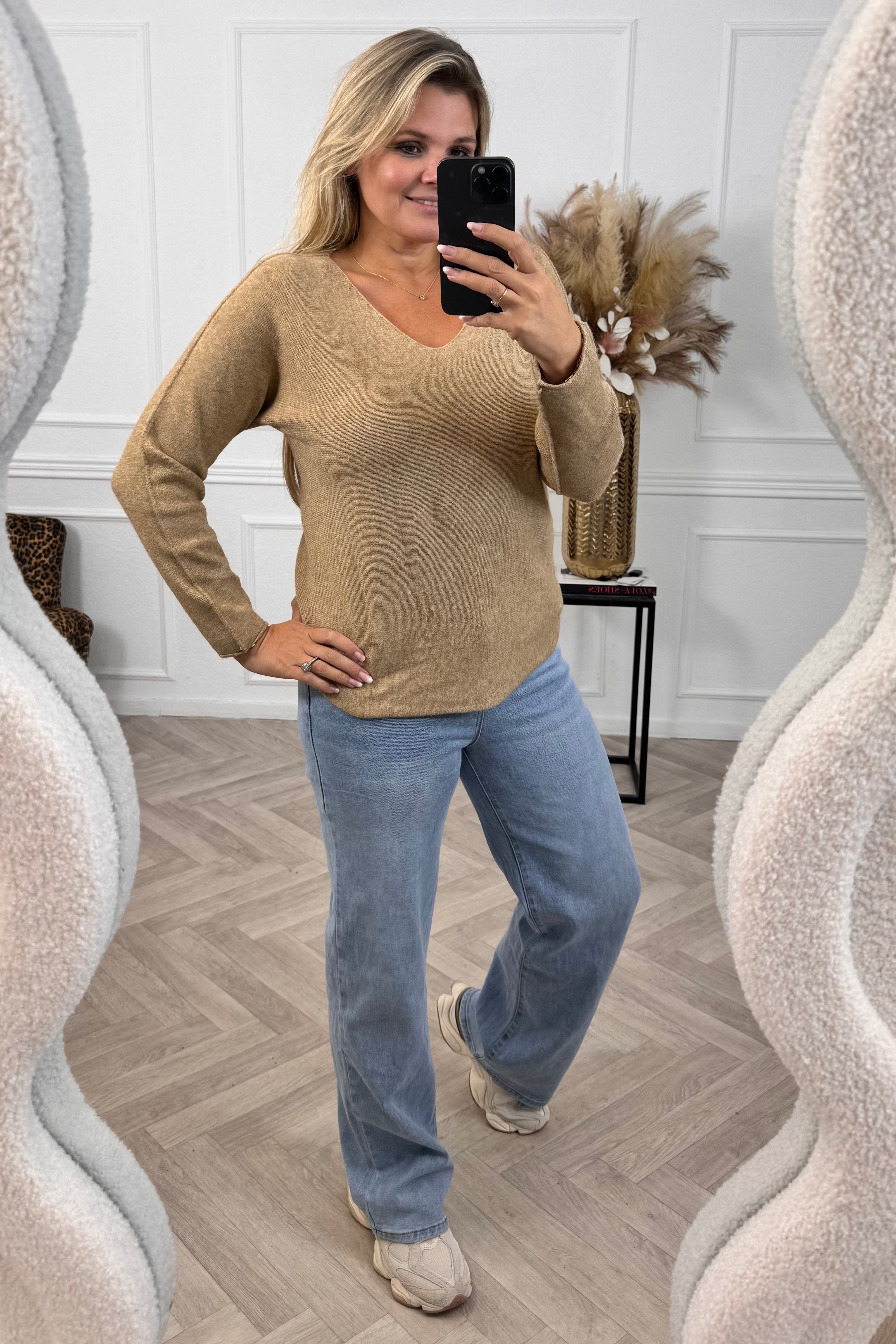De perfecte basic sweater, en ook nog eens met een V hals! Shop hem nu in light camel!