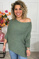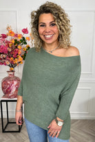 Perfect Breeze Off Shoulder Sweater - Armygreen