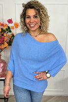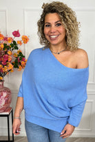 Perfect Breeze Off Shoulder Sweater - Blue