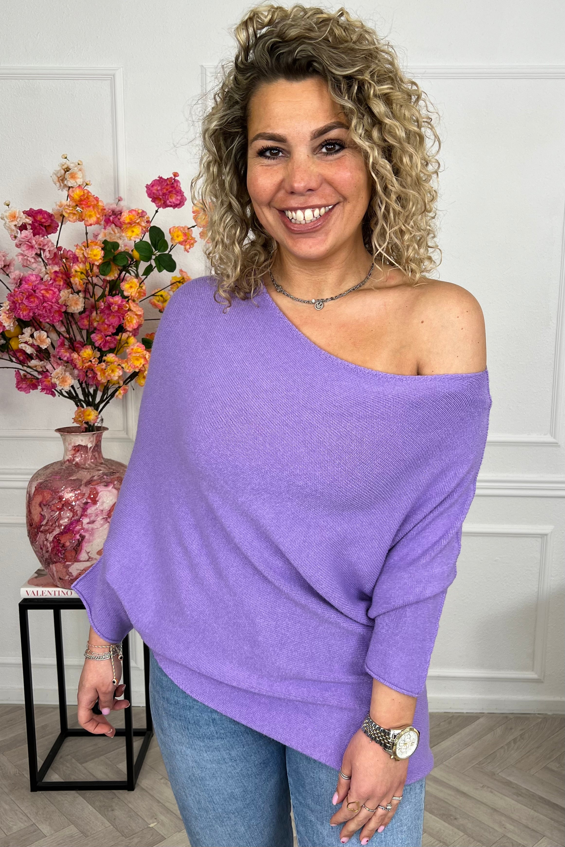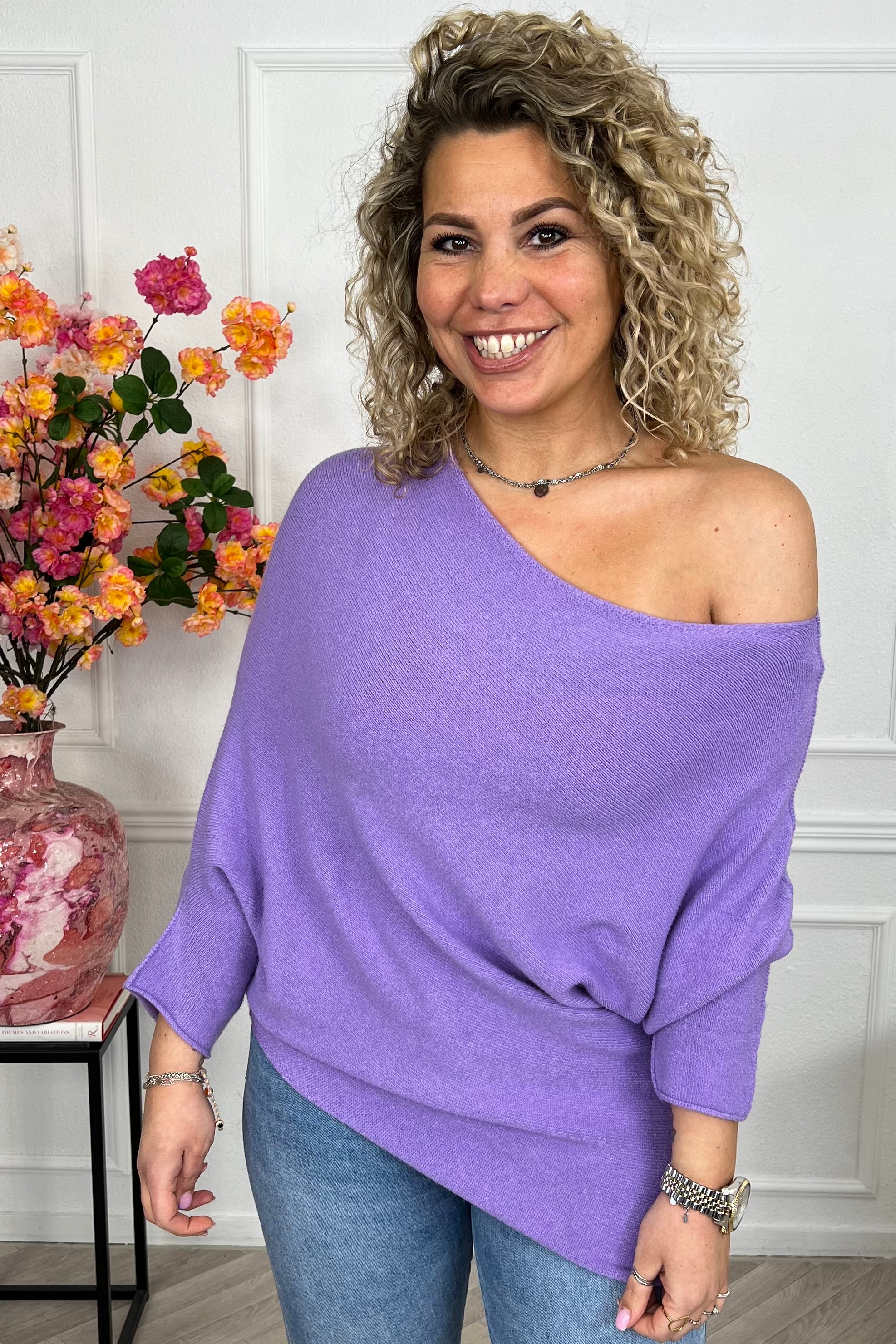 Deze heerlijke sweater draag je off shoulder en zit perfect! Shop hem nu in lila!