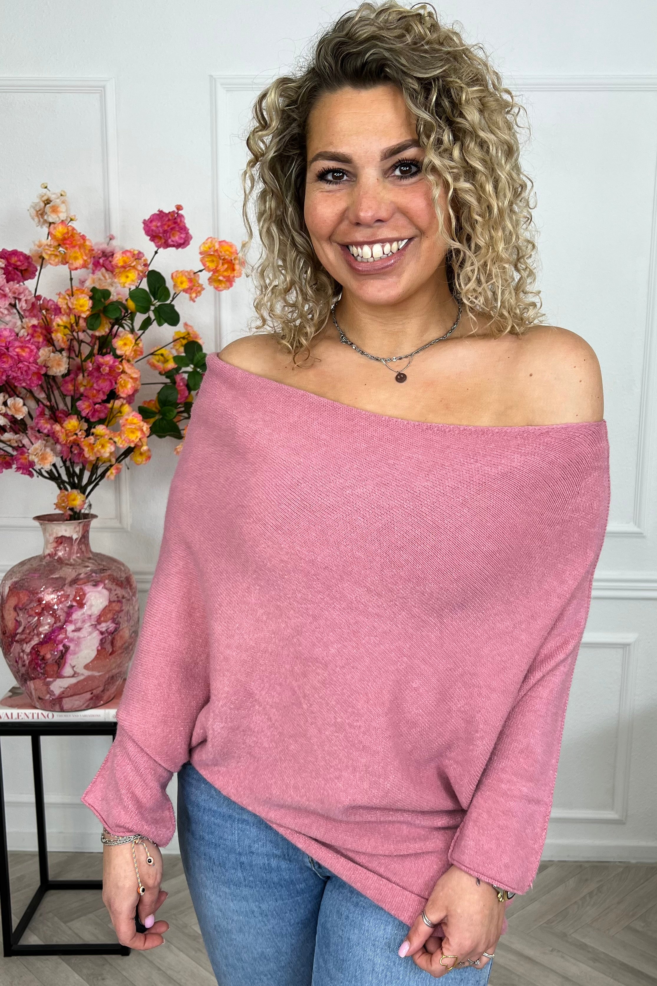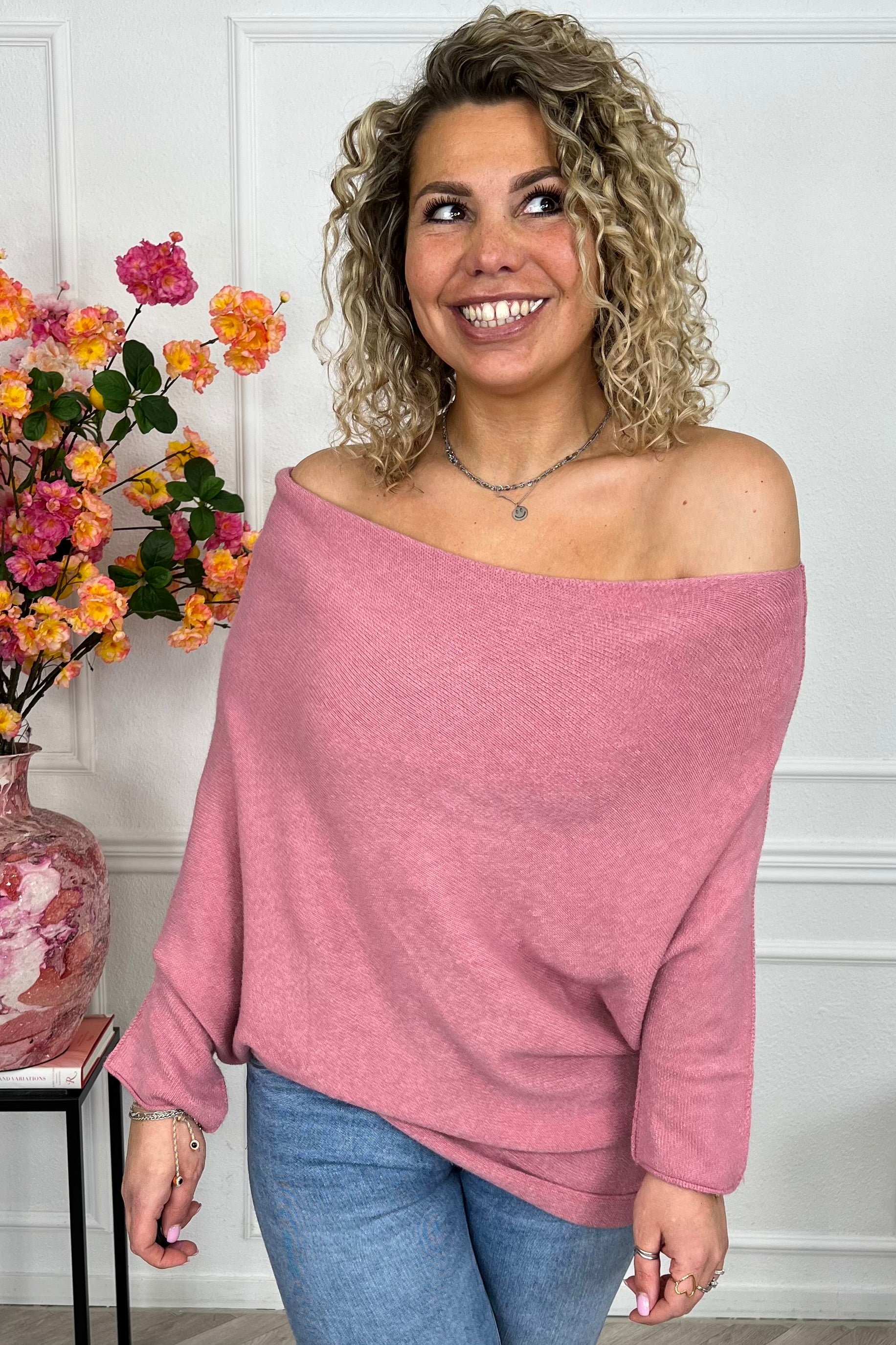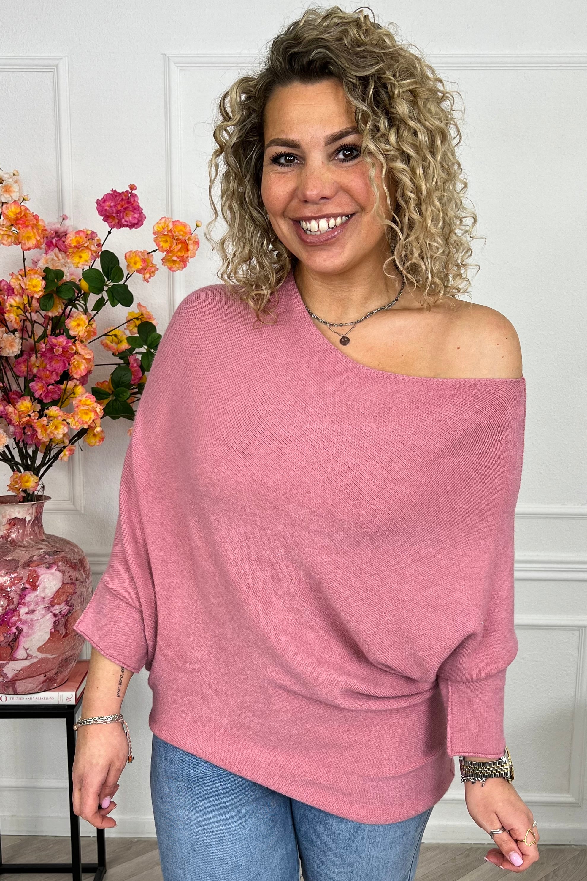 Deze heerlijke sweater draag je off shoulder en zit perfect! Shop hem nu in old pink!