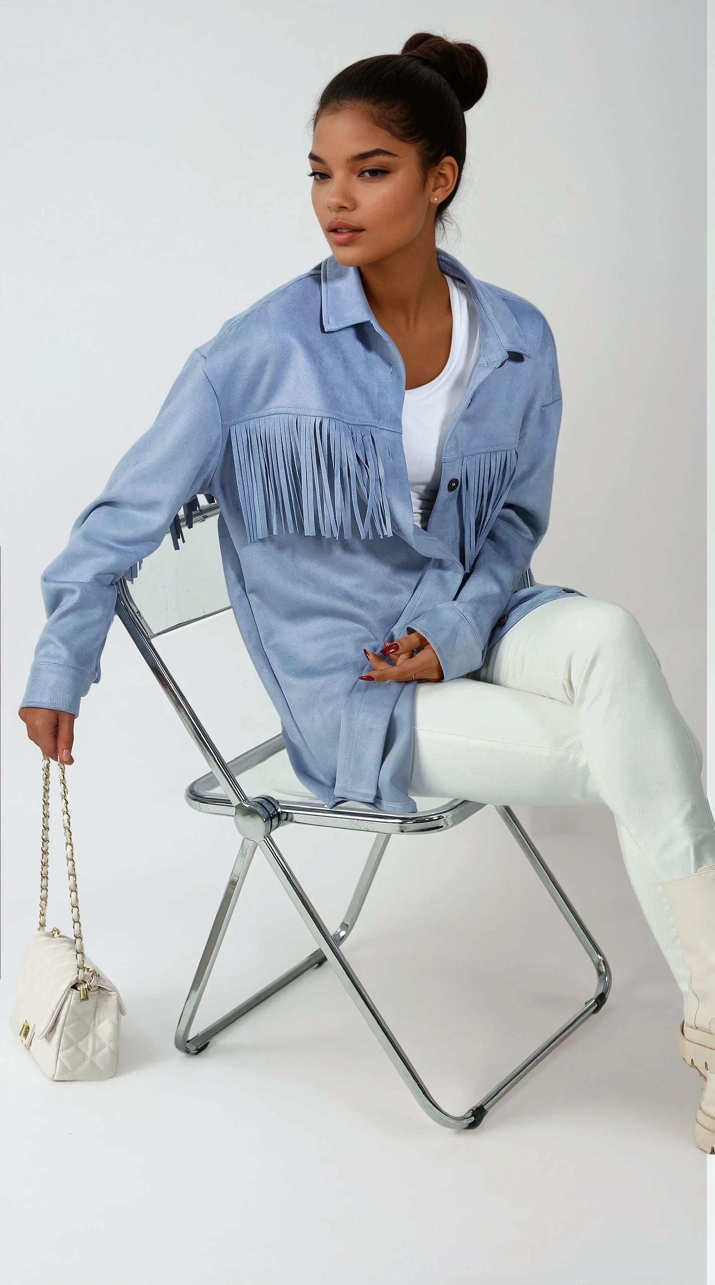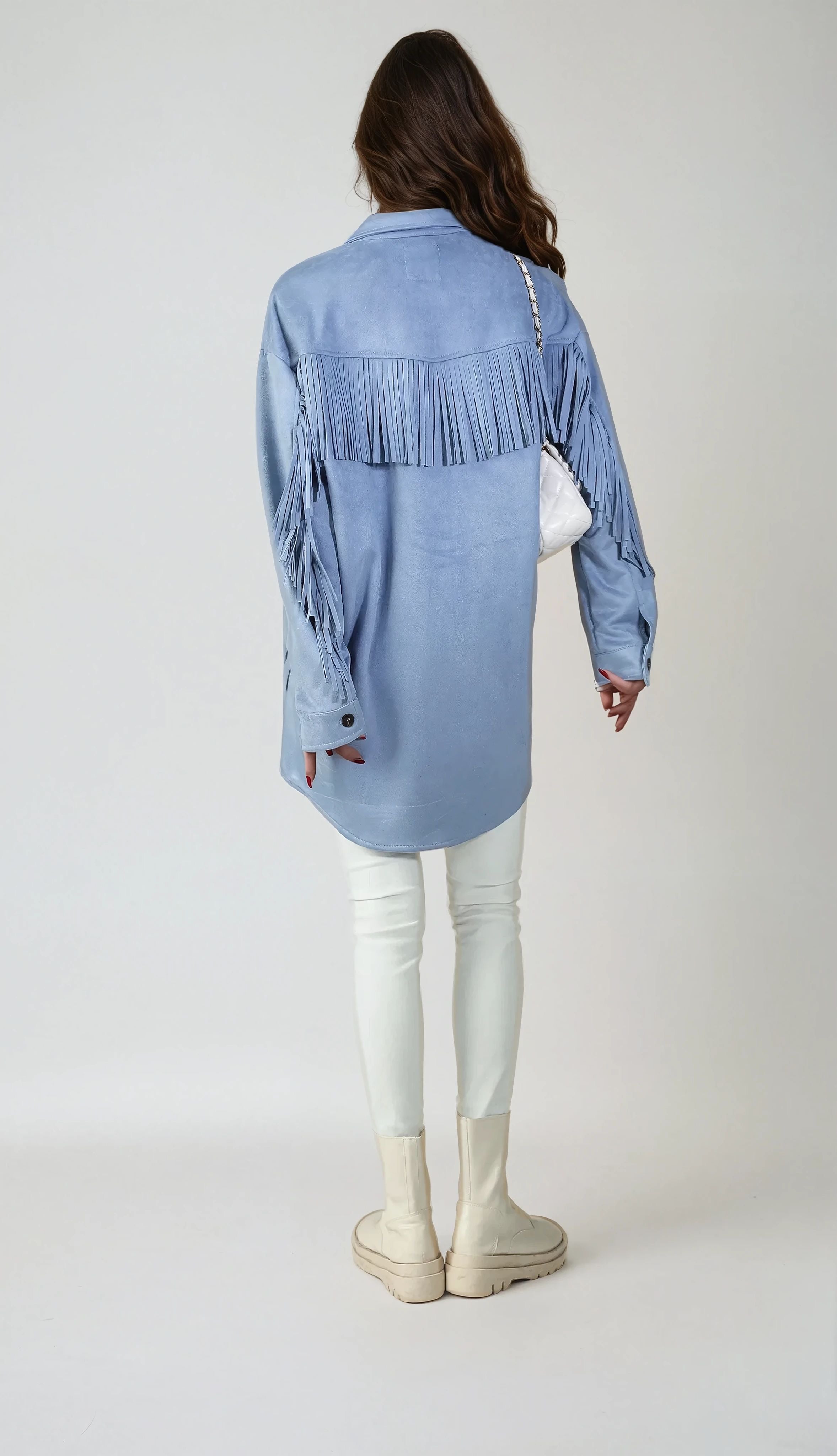 Kijk deze super leuke jasjes! Ze hebben aan de voor en achterkant een leuk fringe detail. Leuk om te dragen als jasje maar ook als blouse! Nu ook in 3 andere kleuren. Shop hem in light blue!