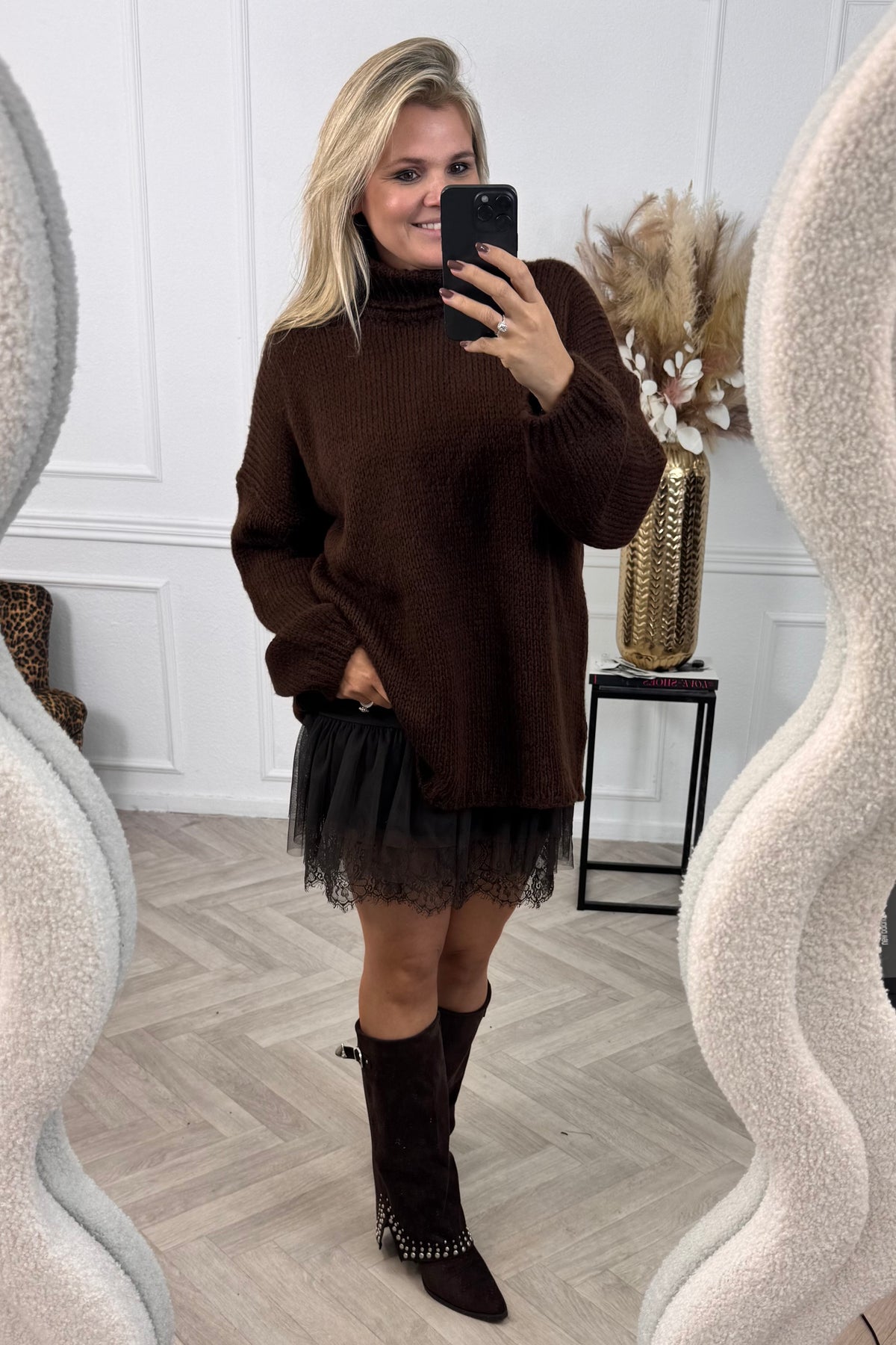 Ontzettend Leuke truien, en heerlijk warm met een coll! Shop de perfect knitted coll sweater nu in brown!