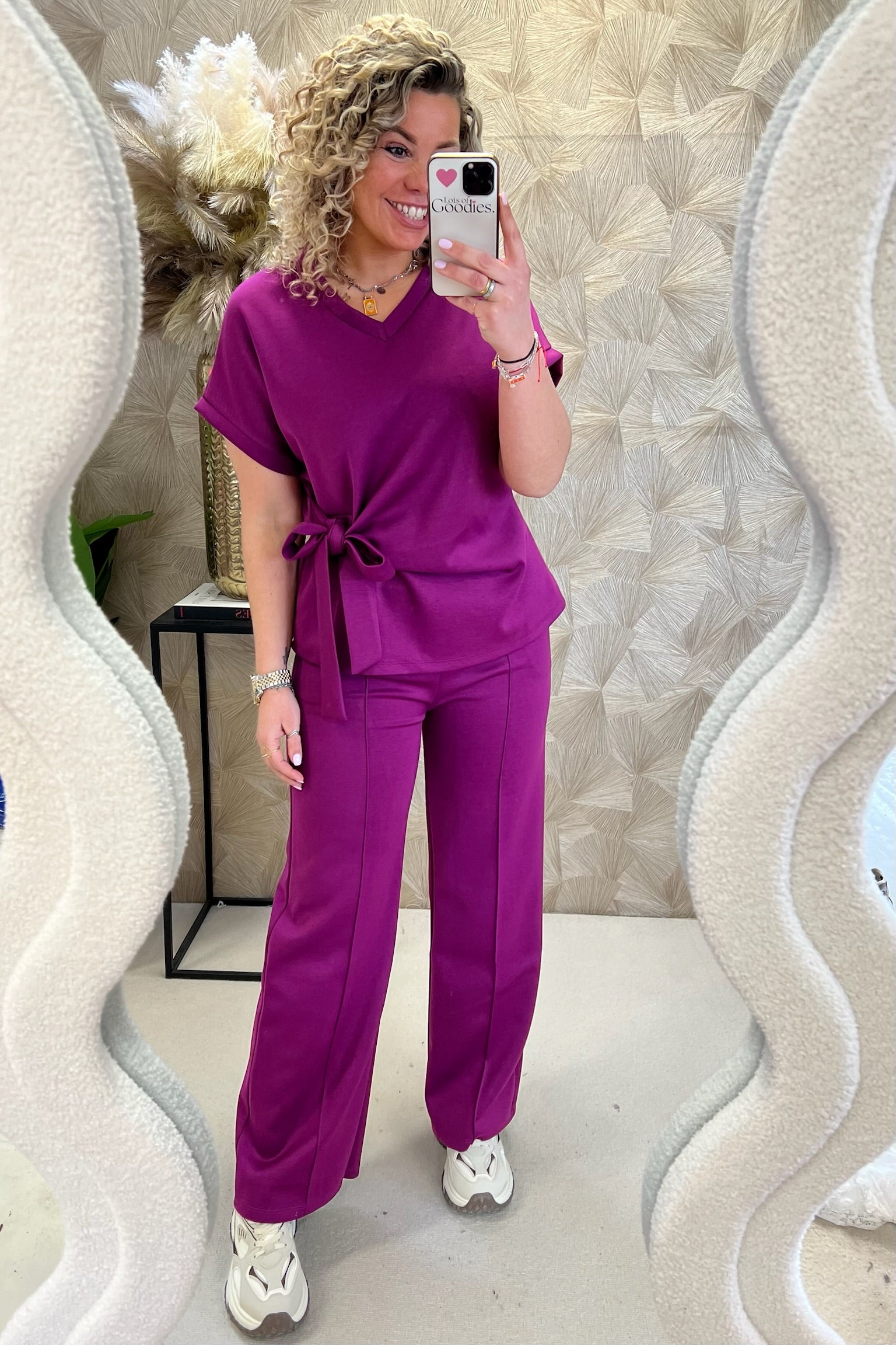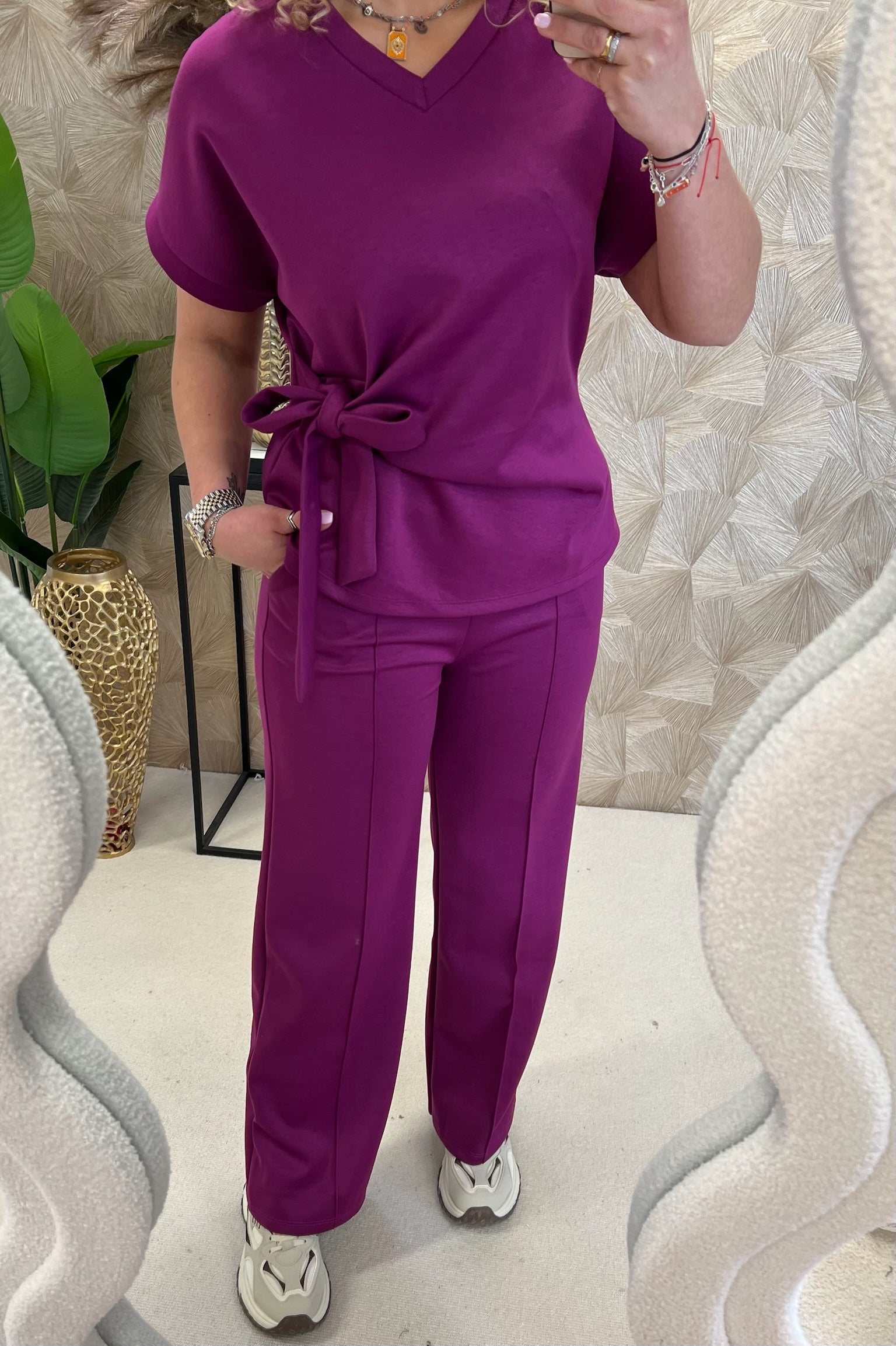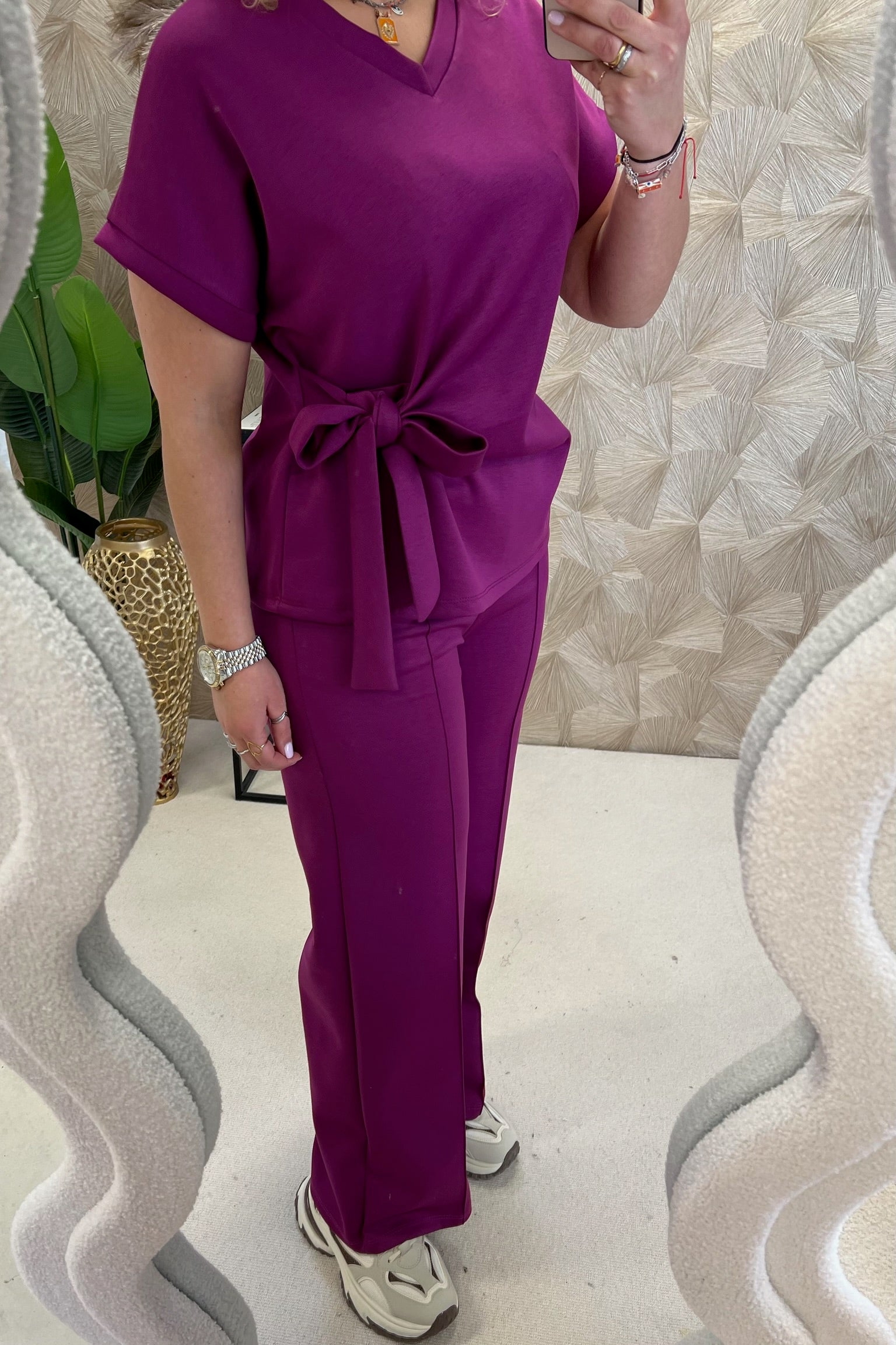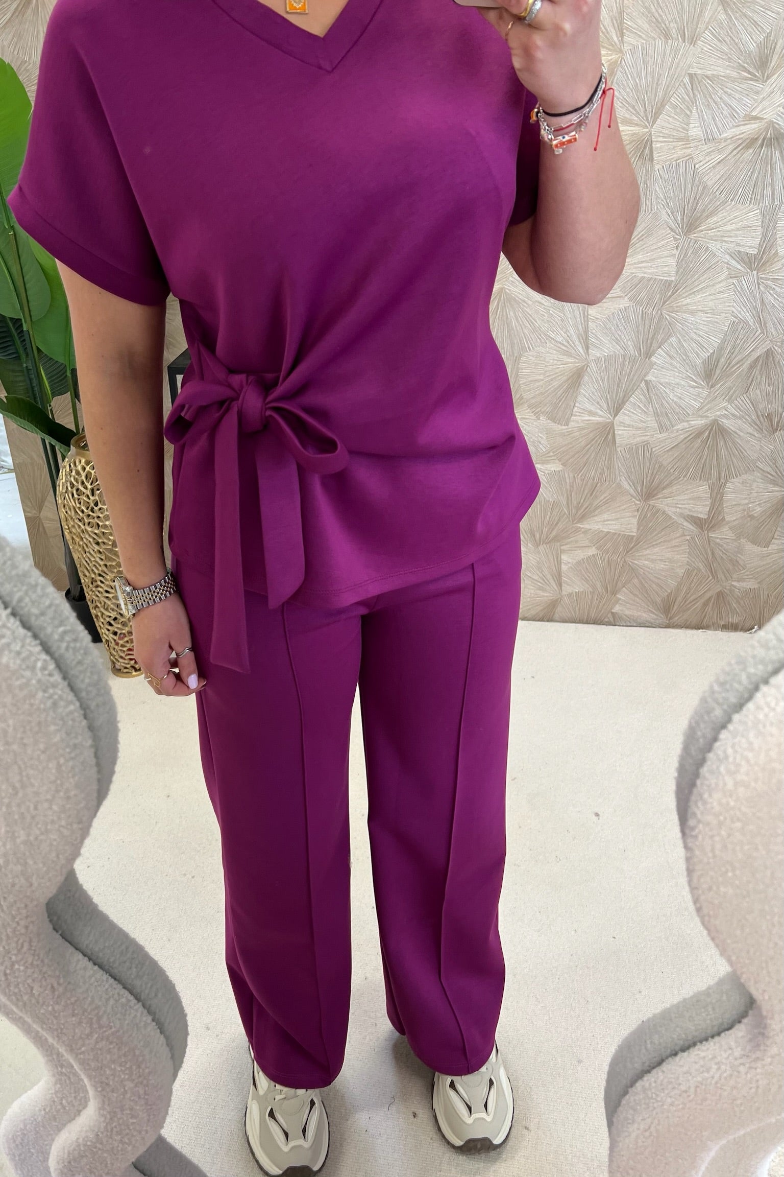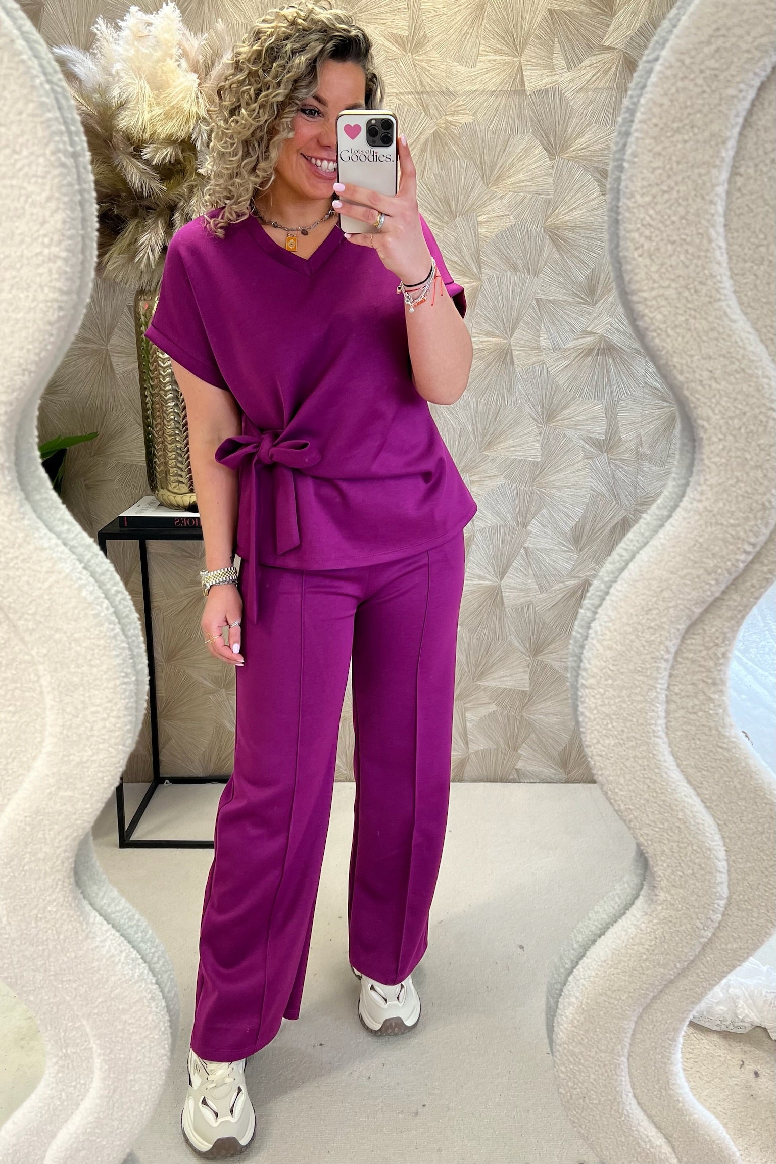 Deze fijne set bestaat uit een comfy pants en een fantastische top met een afslankend effectl! Shop hem in Bordeaux!