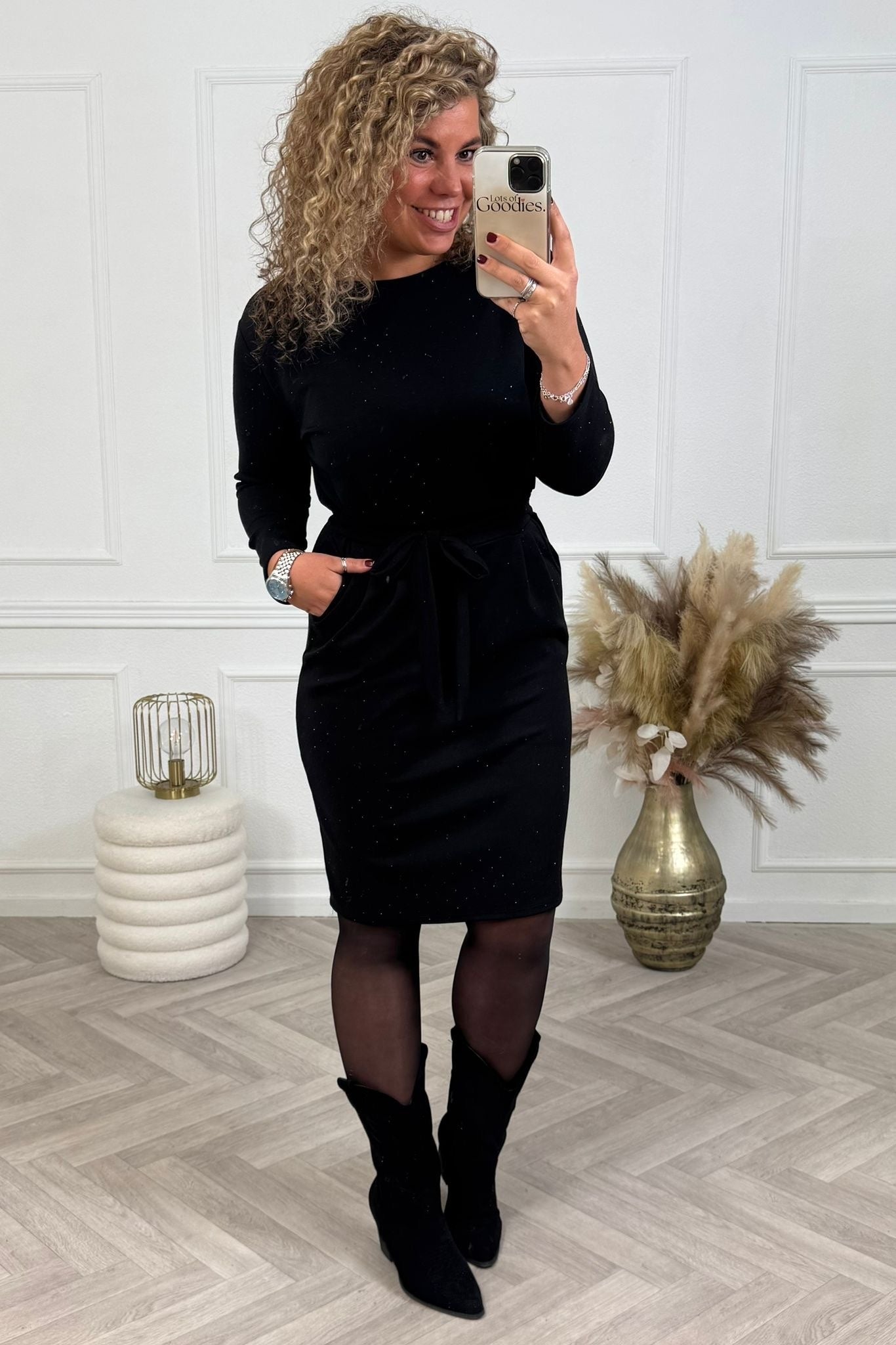Deze jurk is het helemaal! Onze bestseller: de perfect basic dress, maar dan in een mooie bow sparkle! Shop hem online in black!