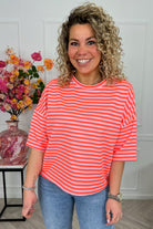 Perfect Short Sleeve Striped Sweater - Orange/Light Pink