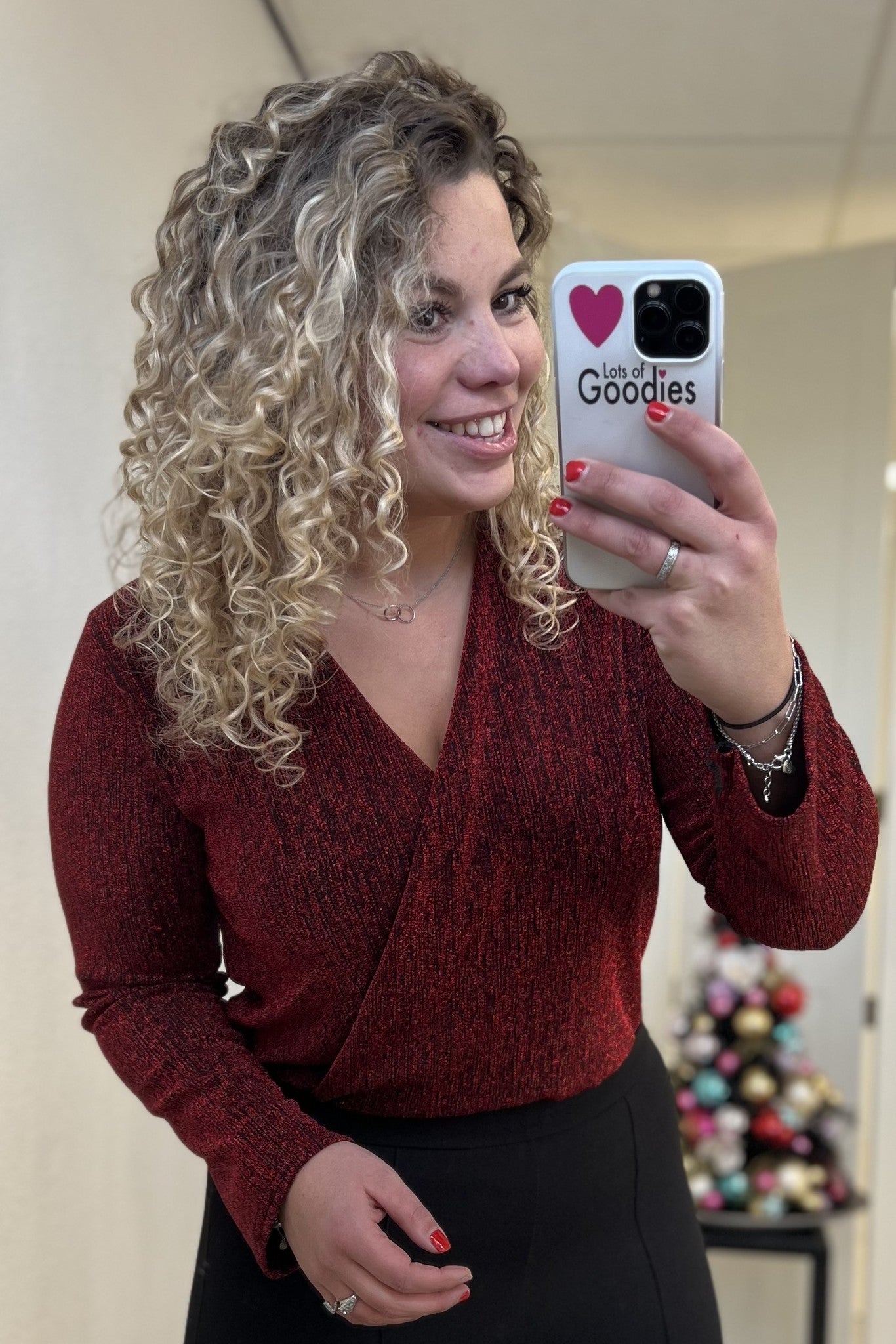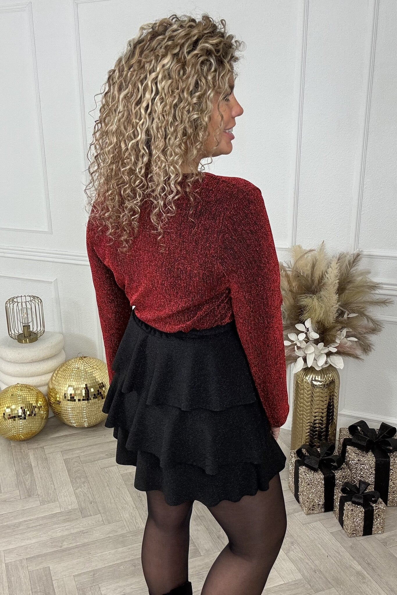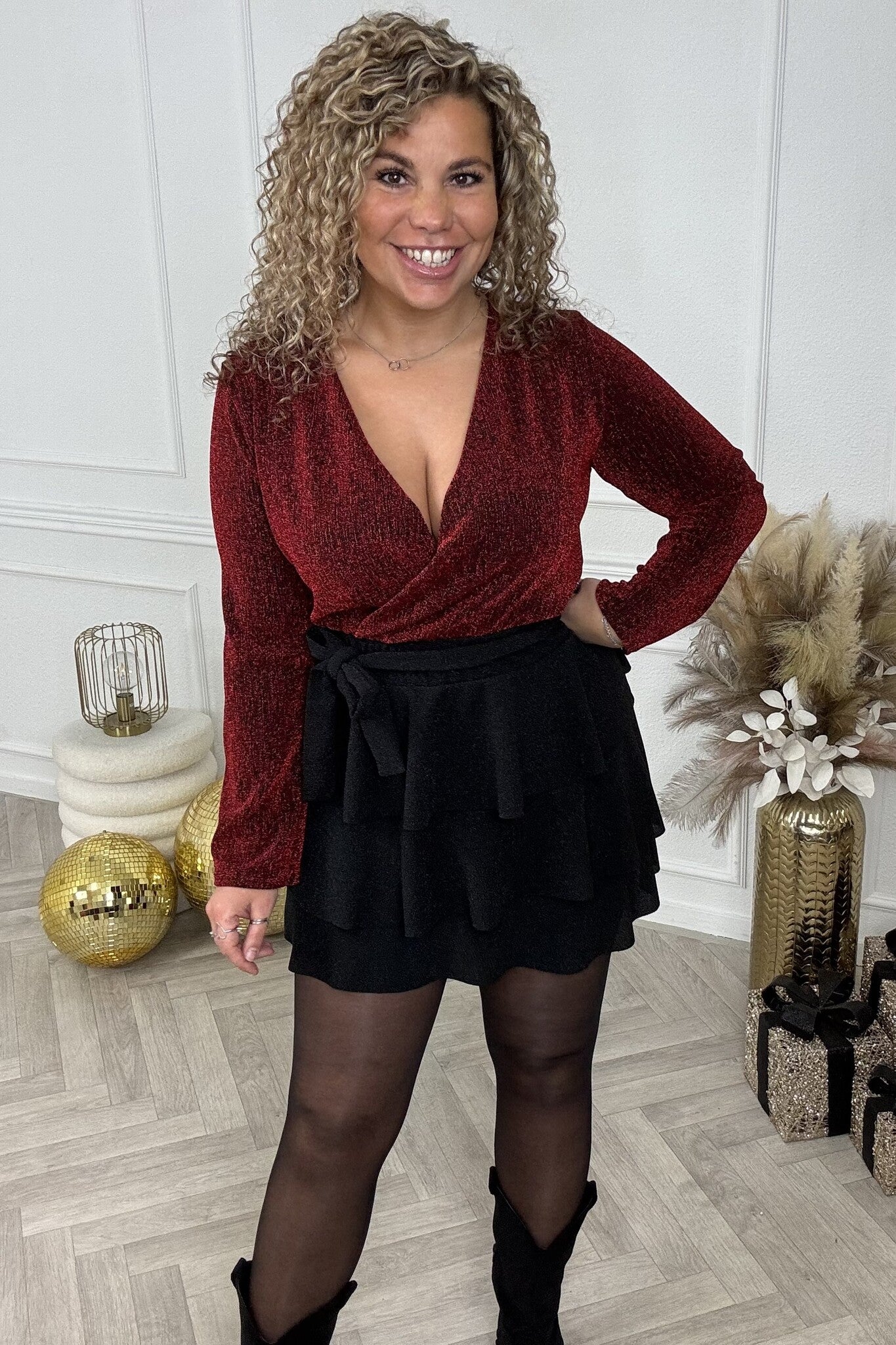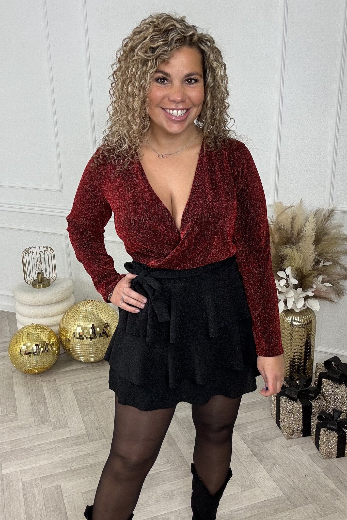 We hebben nu geweldige body met glitter, nooit meer je top uit je rok of broek! Shop hem in bordeaux!