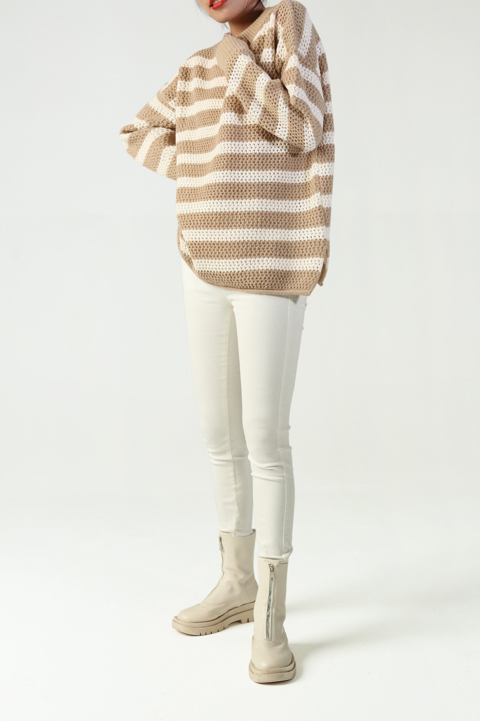 Perfect Striped Knitted Sweater - Beige/Taupe
