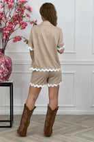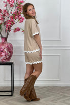 Dit fantastische shortje heeft een leuk swirl detail, we hebben ook een bijpassende blouse! Shop hem nu in beige/white.