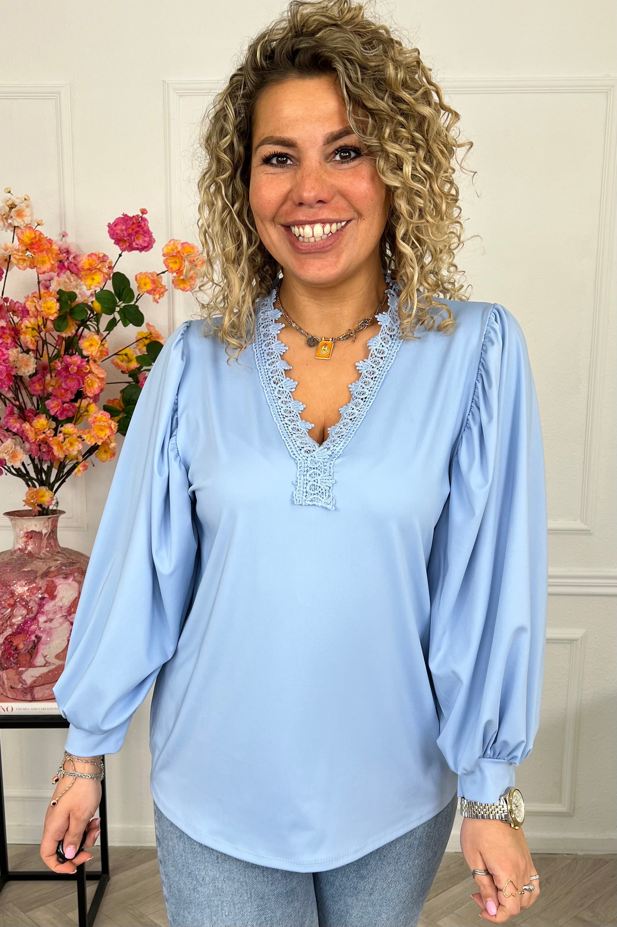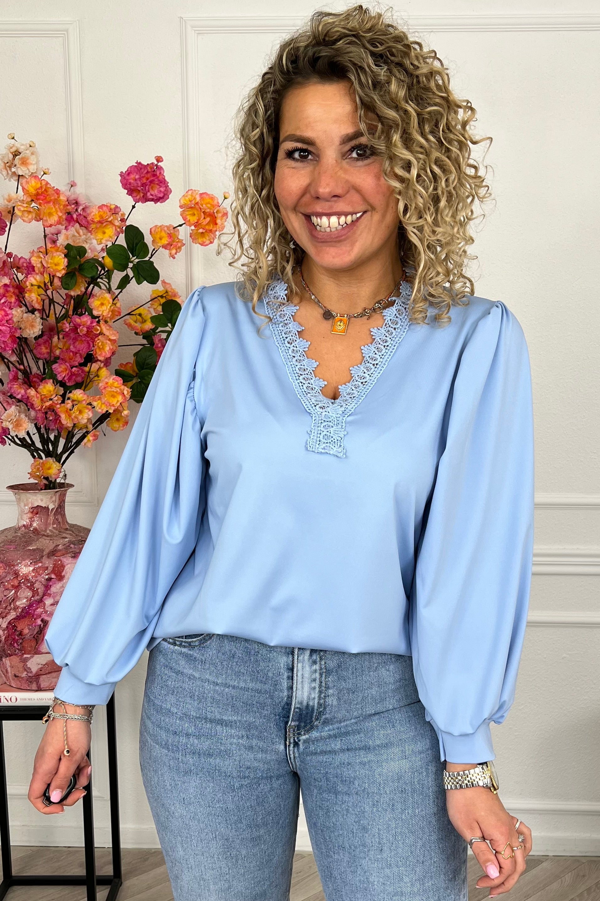 Als je net als wij ook zo gek bent op travel als op lace, dan is deze top perfect! Shop hem in light blue!
