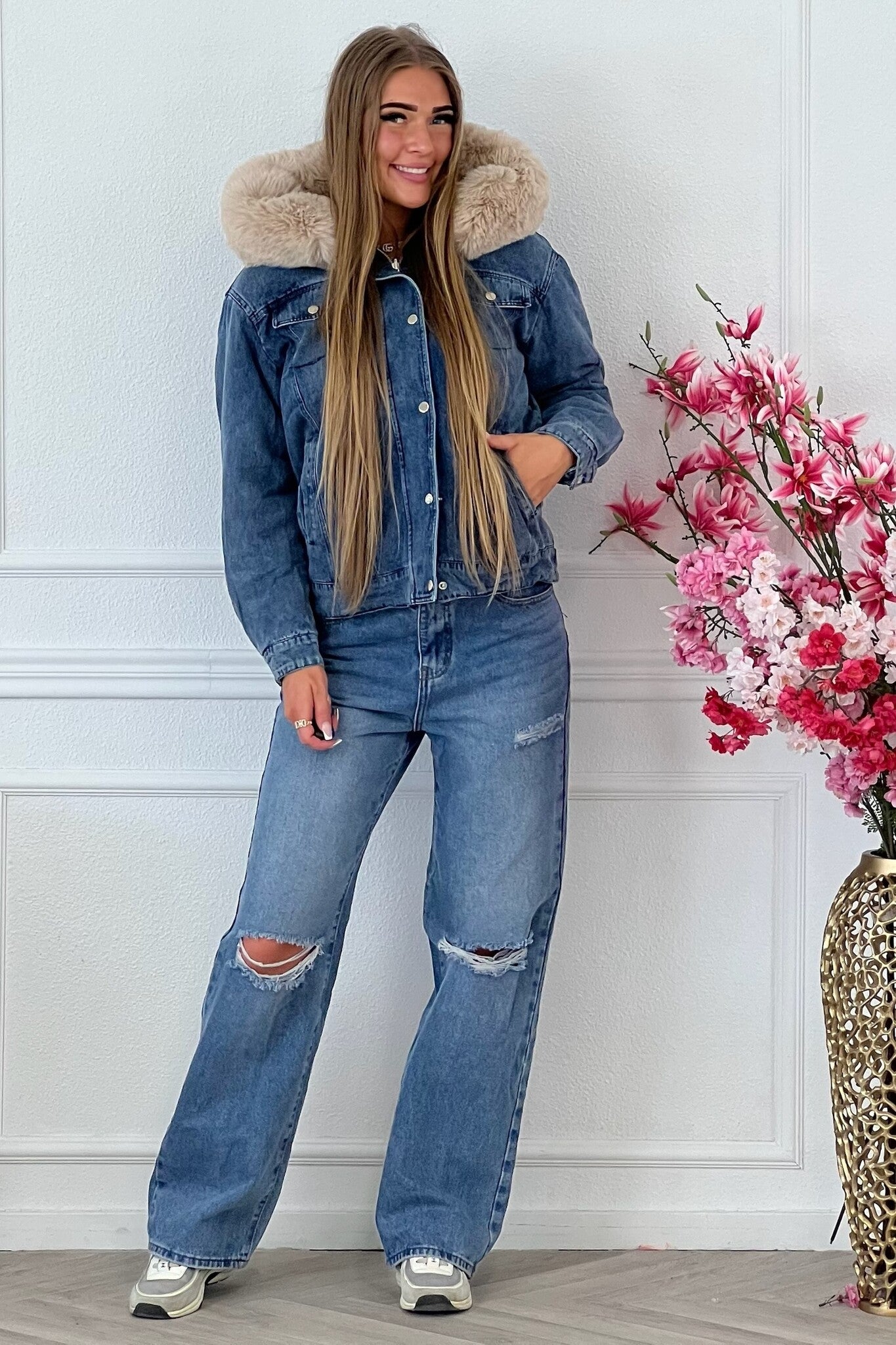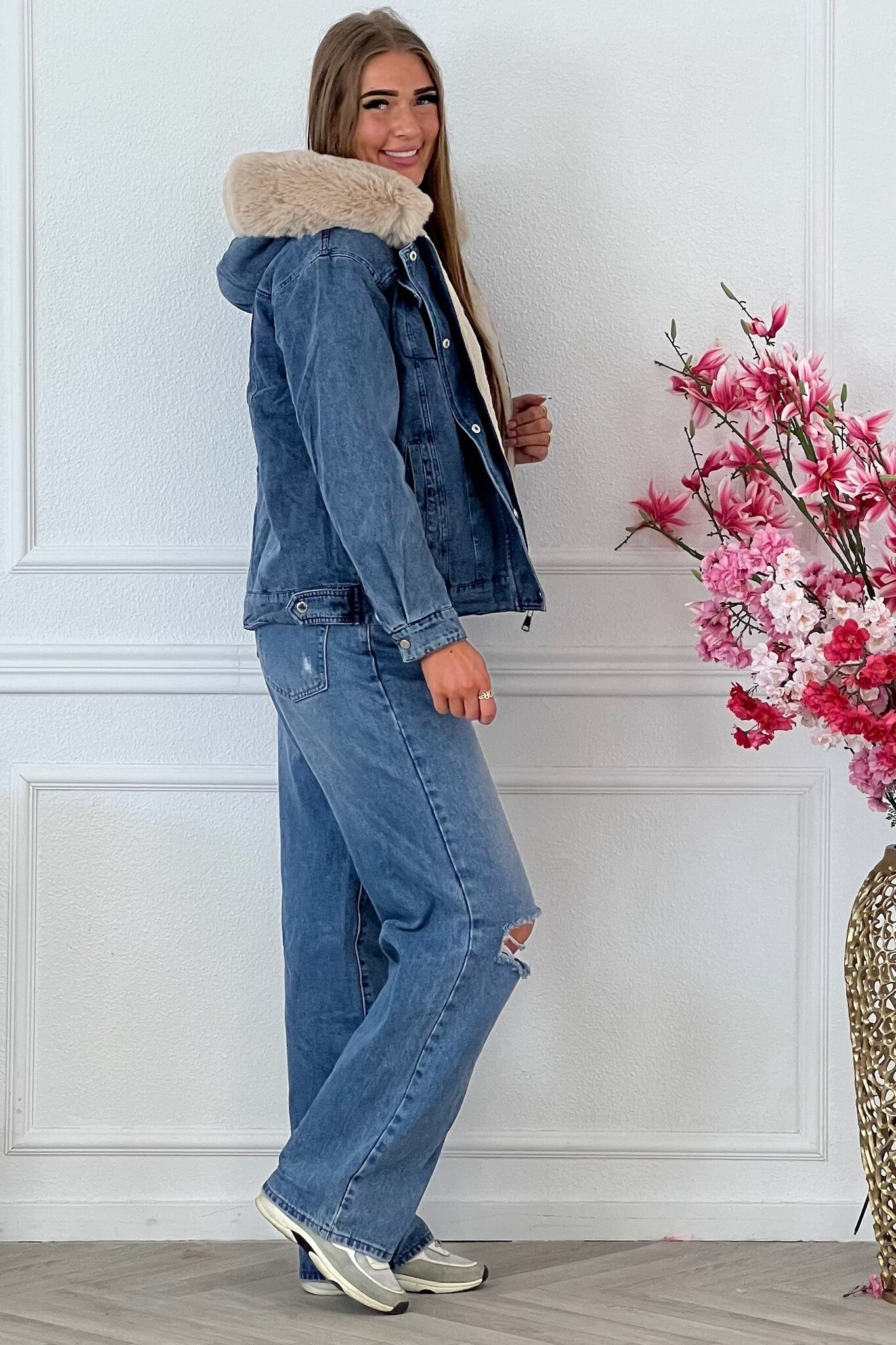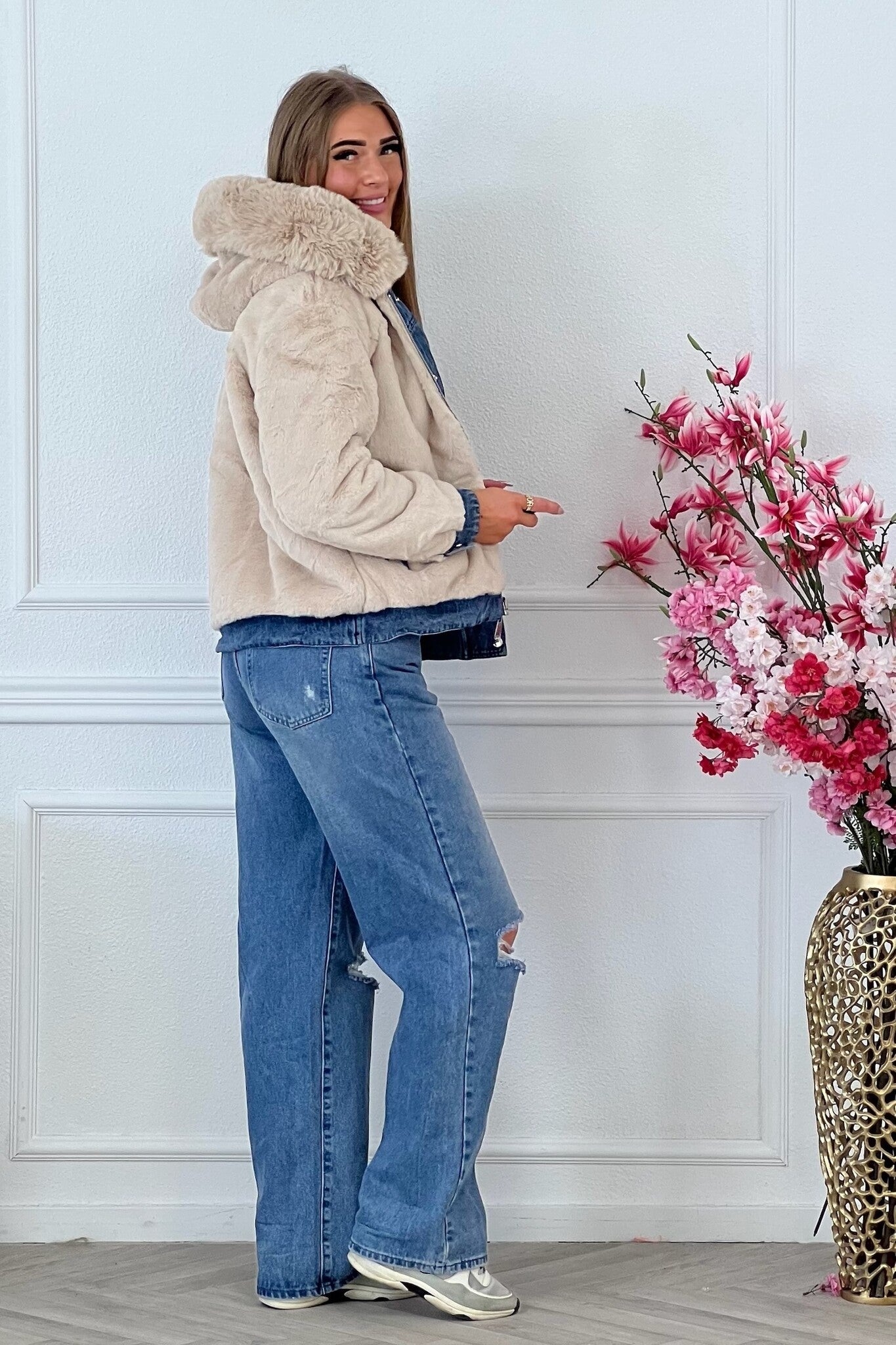 Dit prachtige jack is reversable te dragen en heeft een mooie fake fur kraag! Shop hem in blue met een beige kraag (en binnenkant)!.
