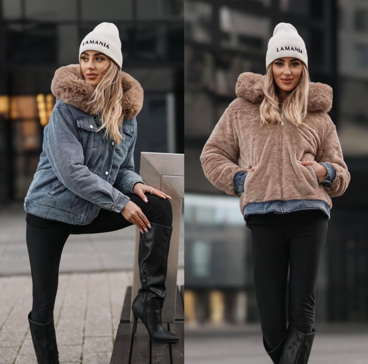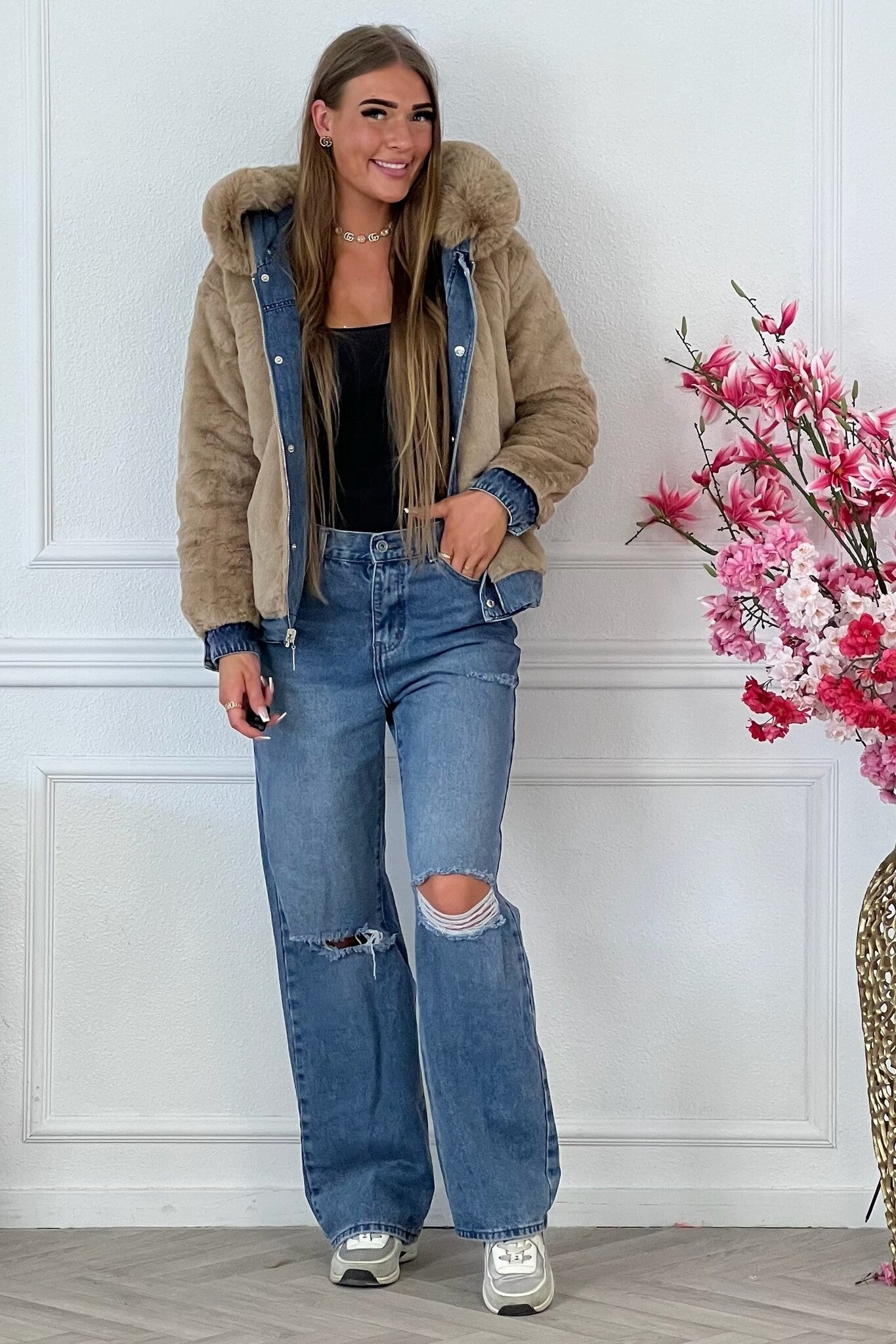 Kleuren: Dit prachtige jack is reversable te dragen en heeft een mooie fake fur kraag! Shop hem in blue met een taupe kraag (en binnenkant)!