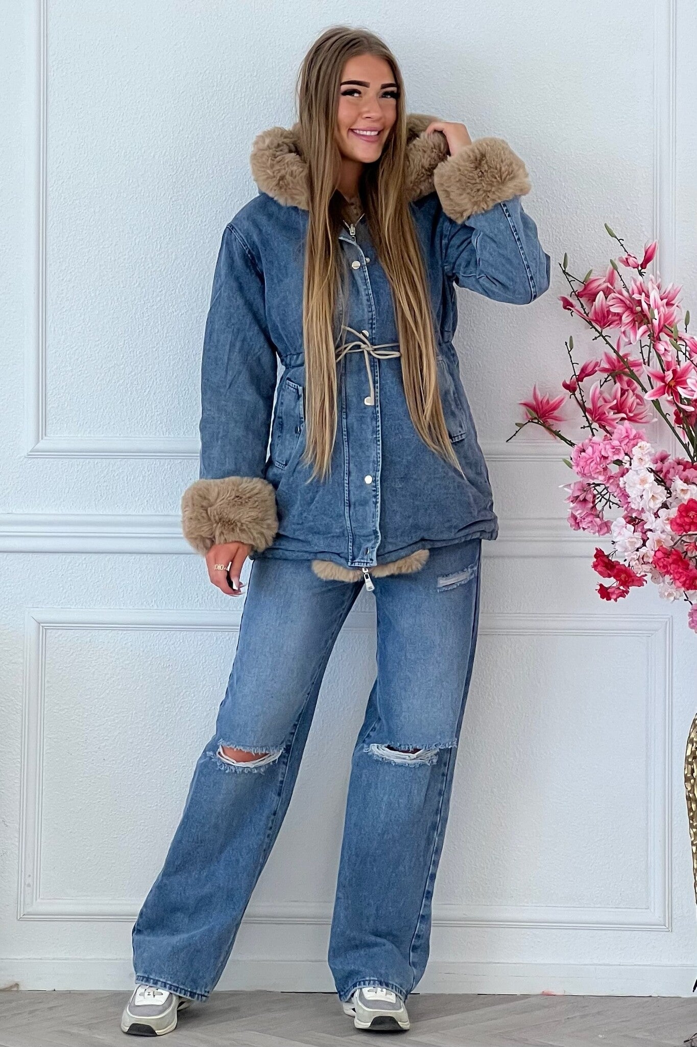 Deze prachtige jassen zijn reversable te dragen en hebben een mooie fake fur kraag! Shop hem in blue met een taupe kraag (en binnenkant)!