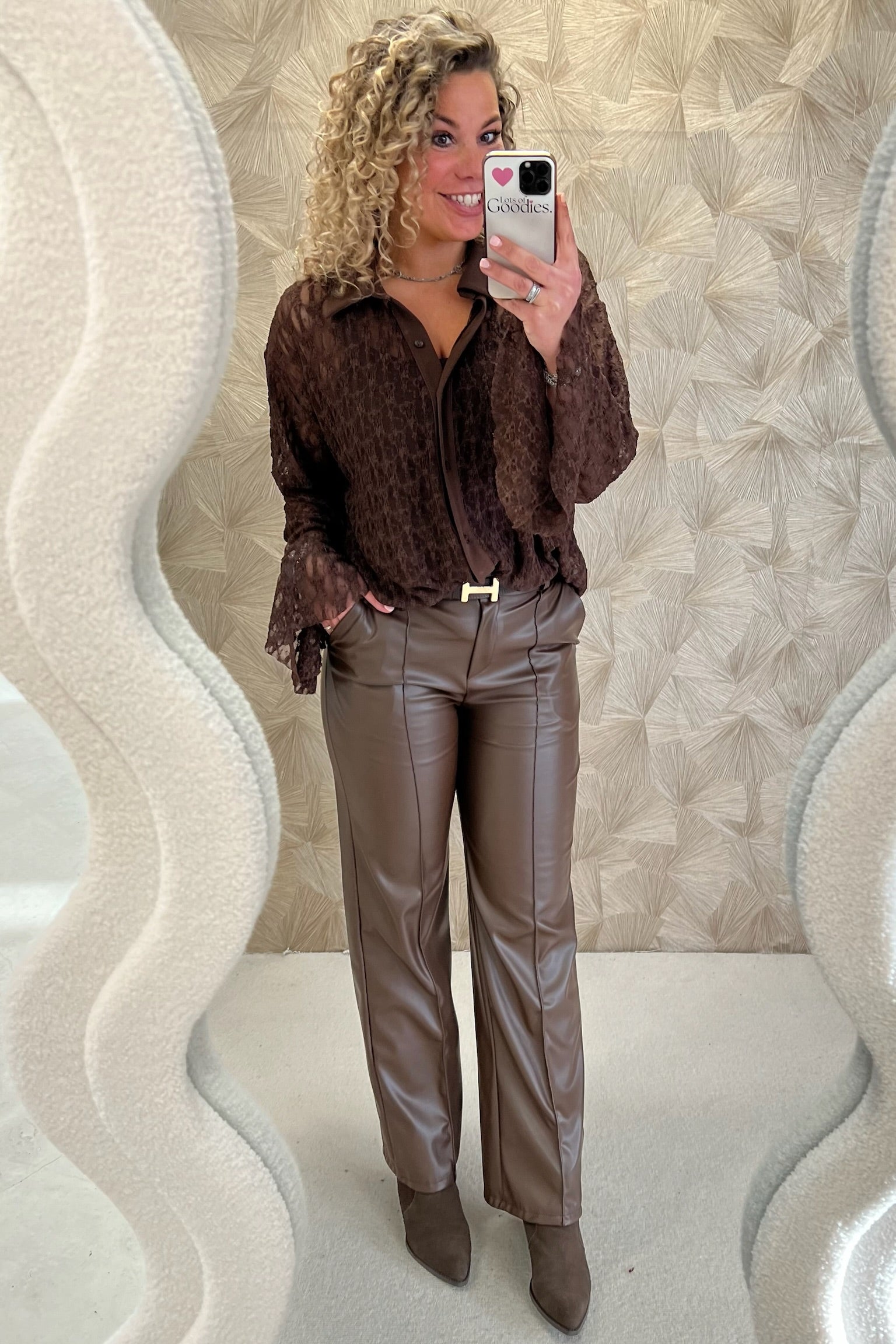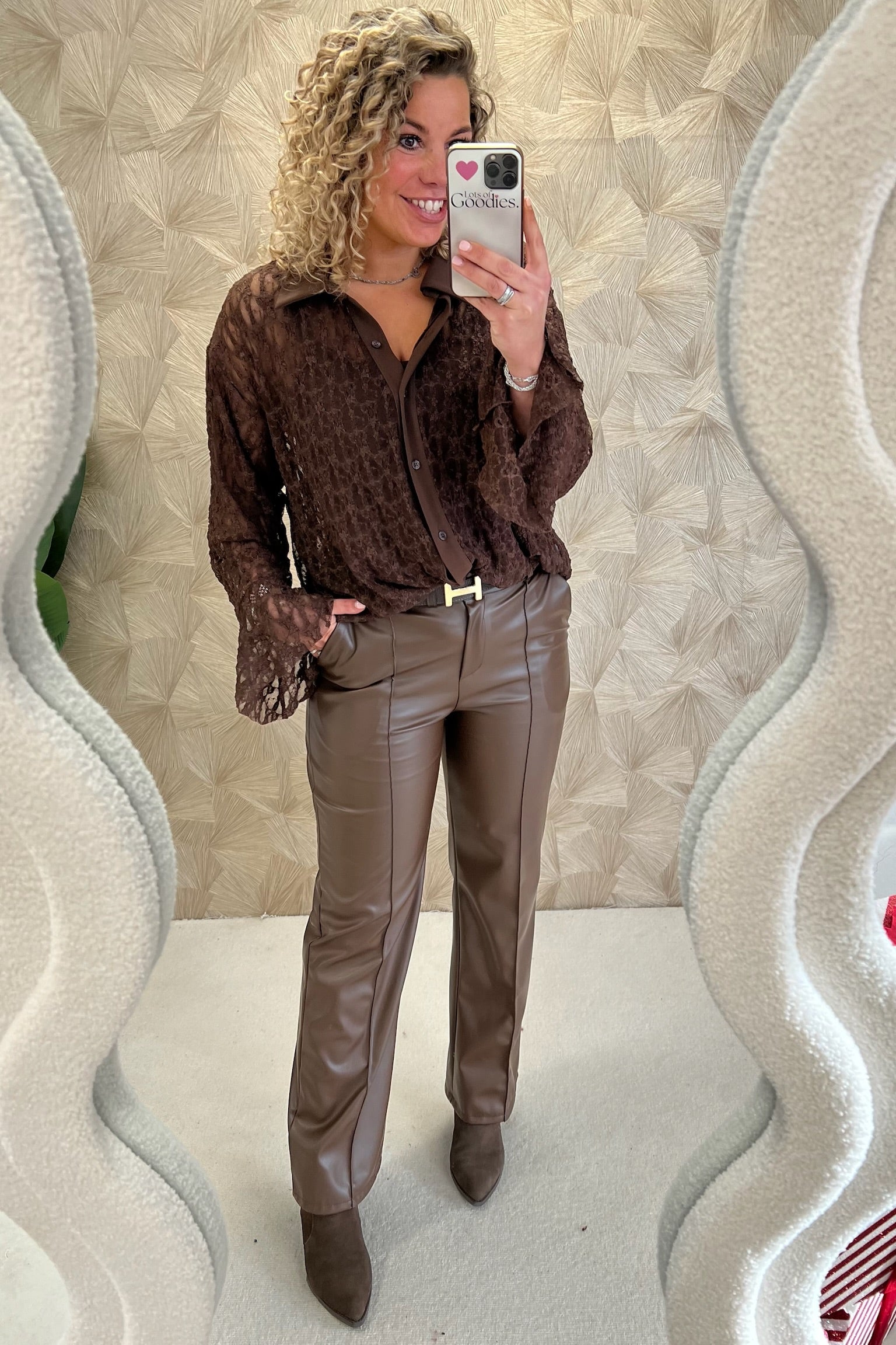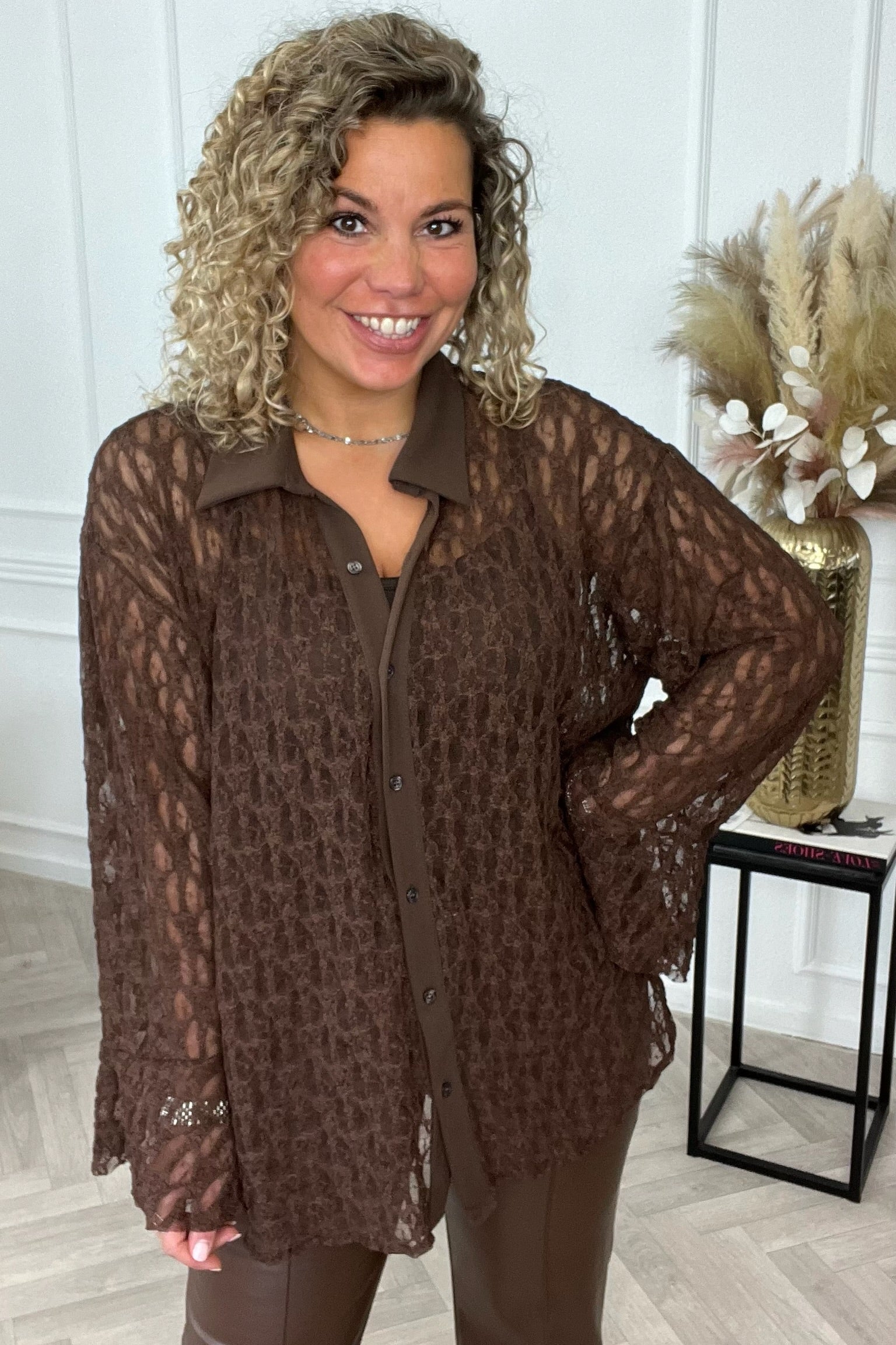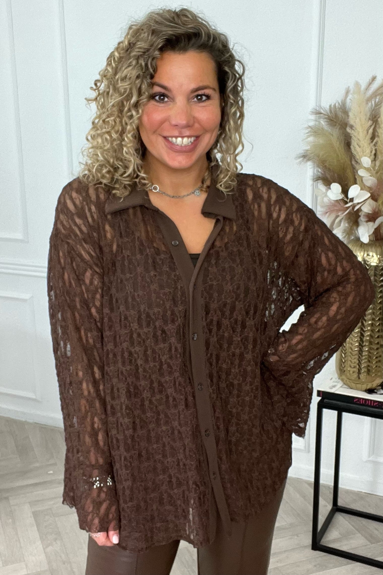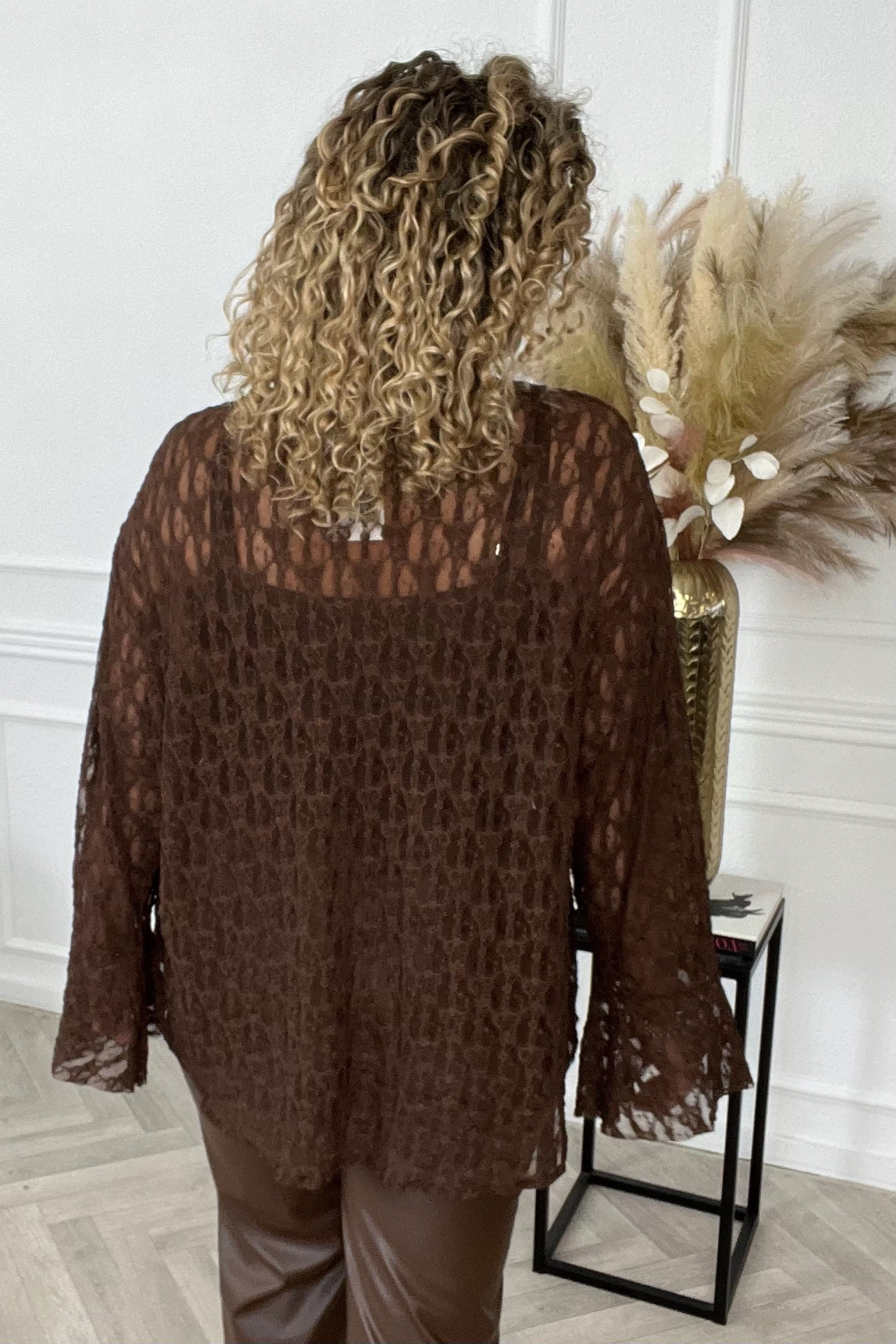 Een super leuke blouse met wijd uitlopende mouwen! Shop hem in brown!