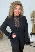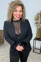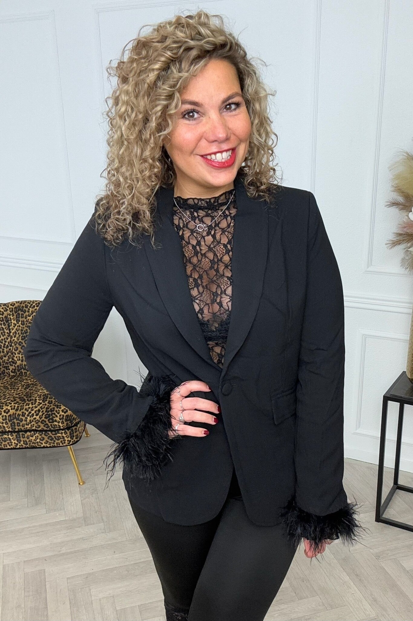 We hebben een mooie nieuwe blazer met veertjes bij de mouwen. We love it! Shop hem nu in black.
