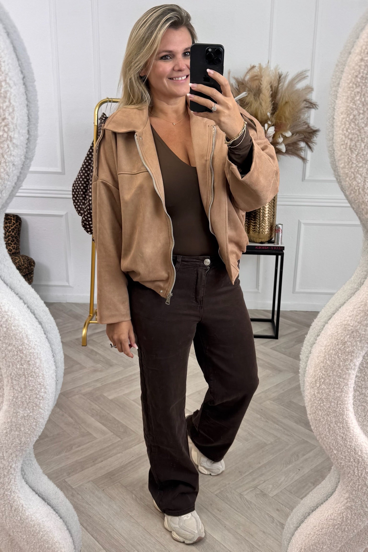 Deze mooie suedine bomber is perfect voor deze tijd van het jaar! Shop hem in camel!