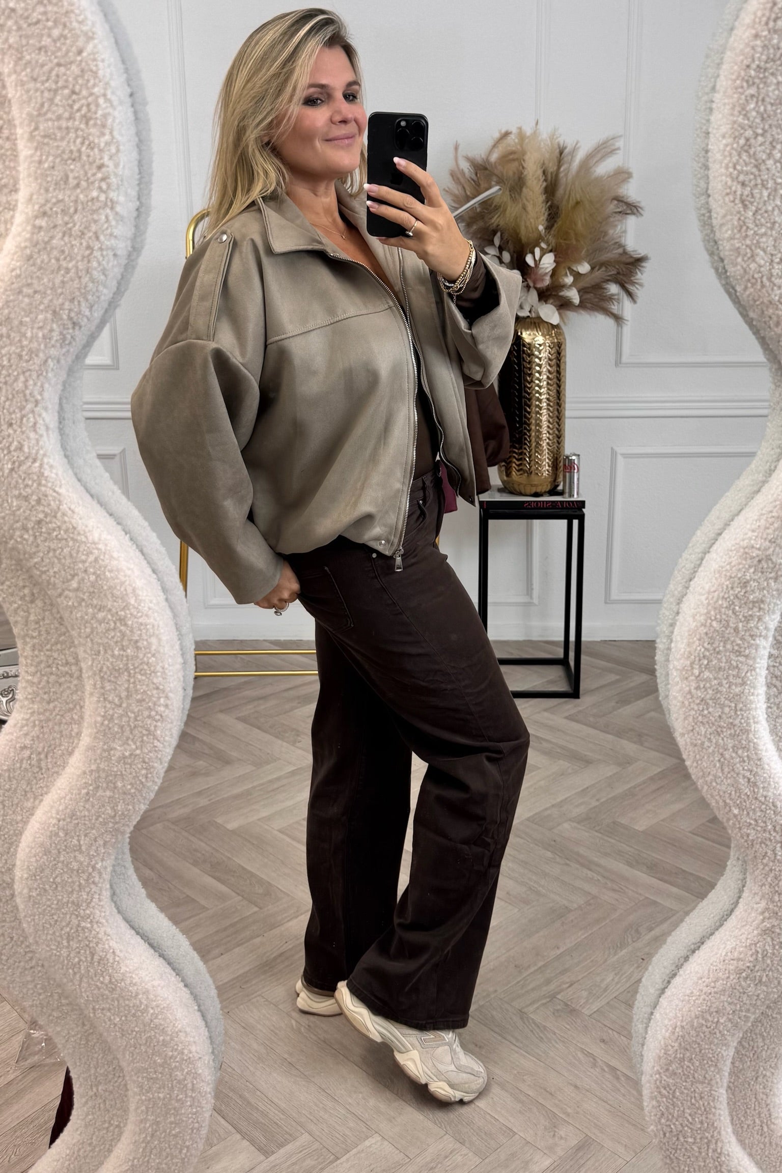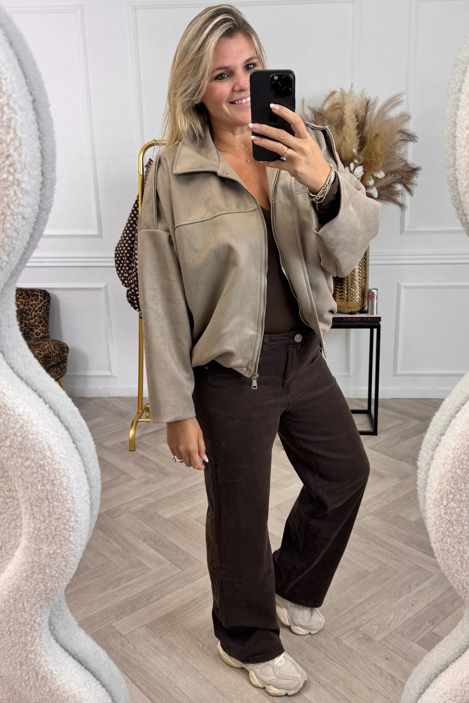 Deze mooie suedine bomber is perfect voor deze tijd van het jaar! Shop hem in khaki!