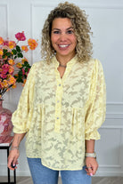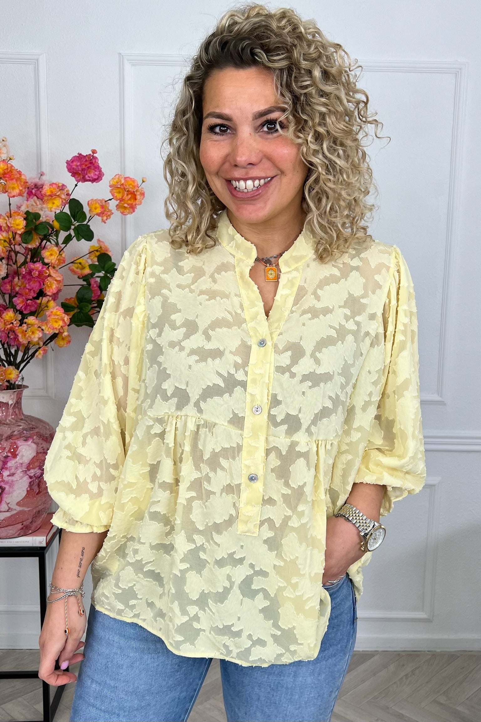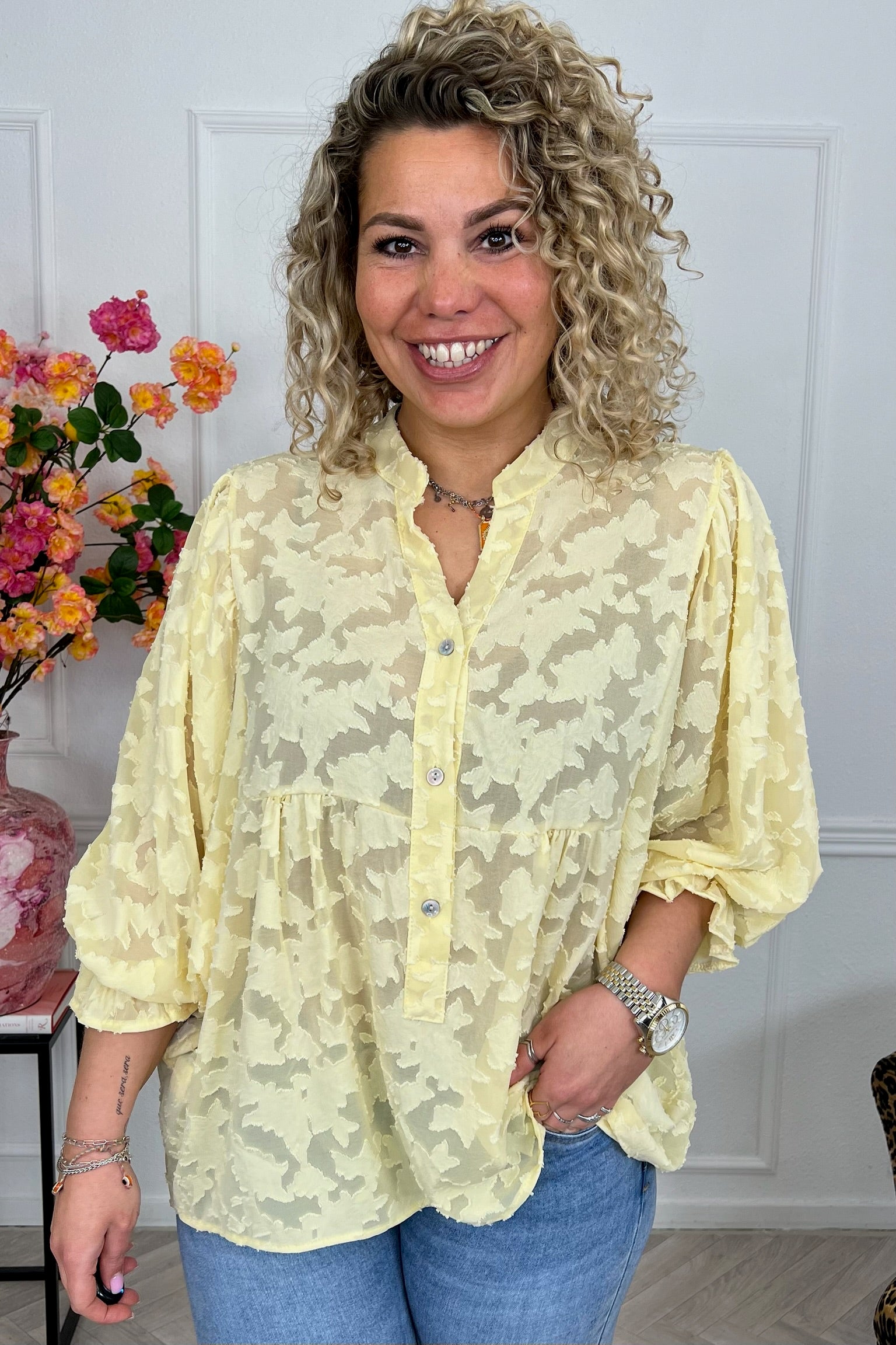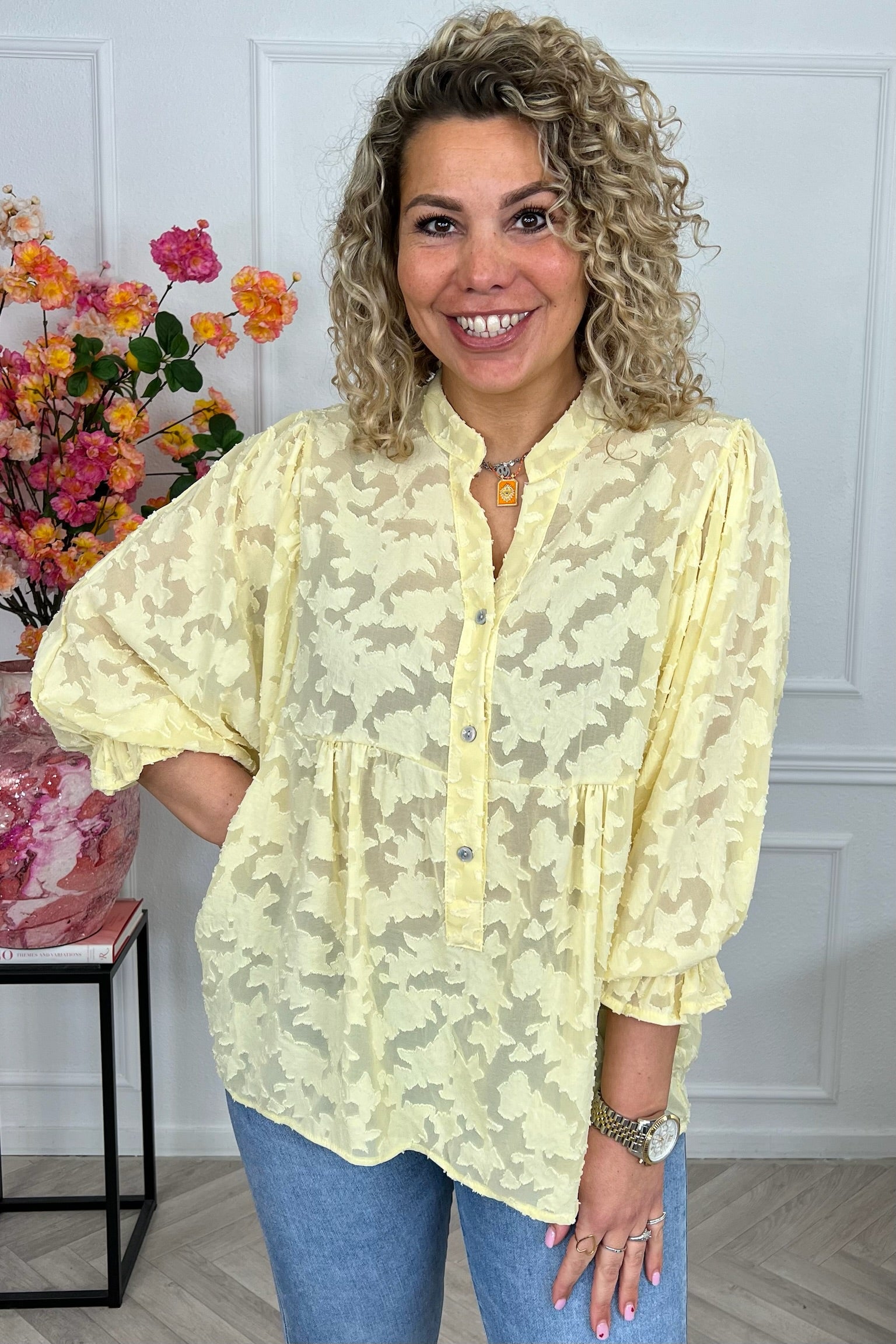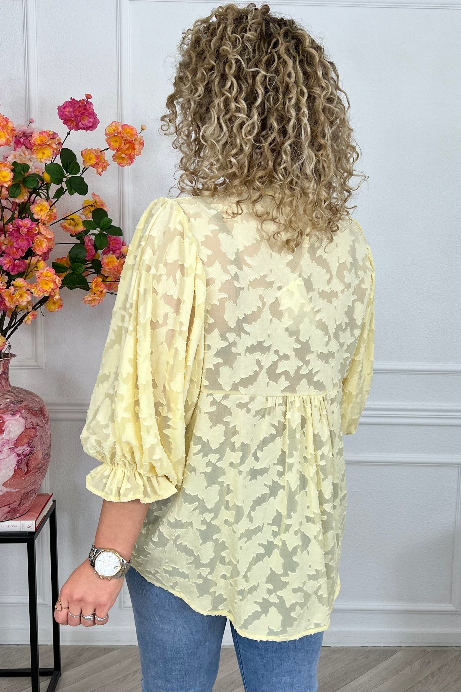 We hebben een superleuke blouse binnen met een mooie patroon! Shop hem nu in Soft Yellow.