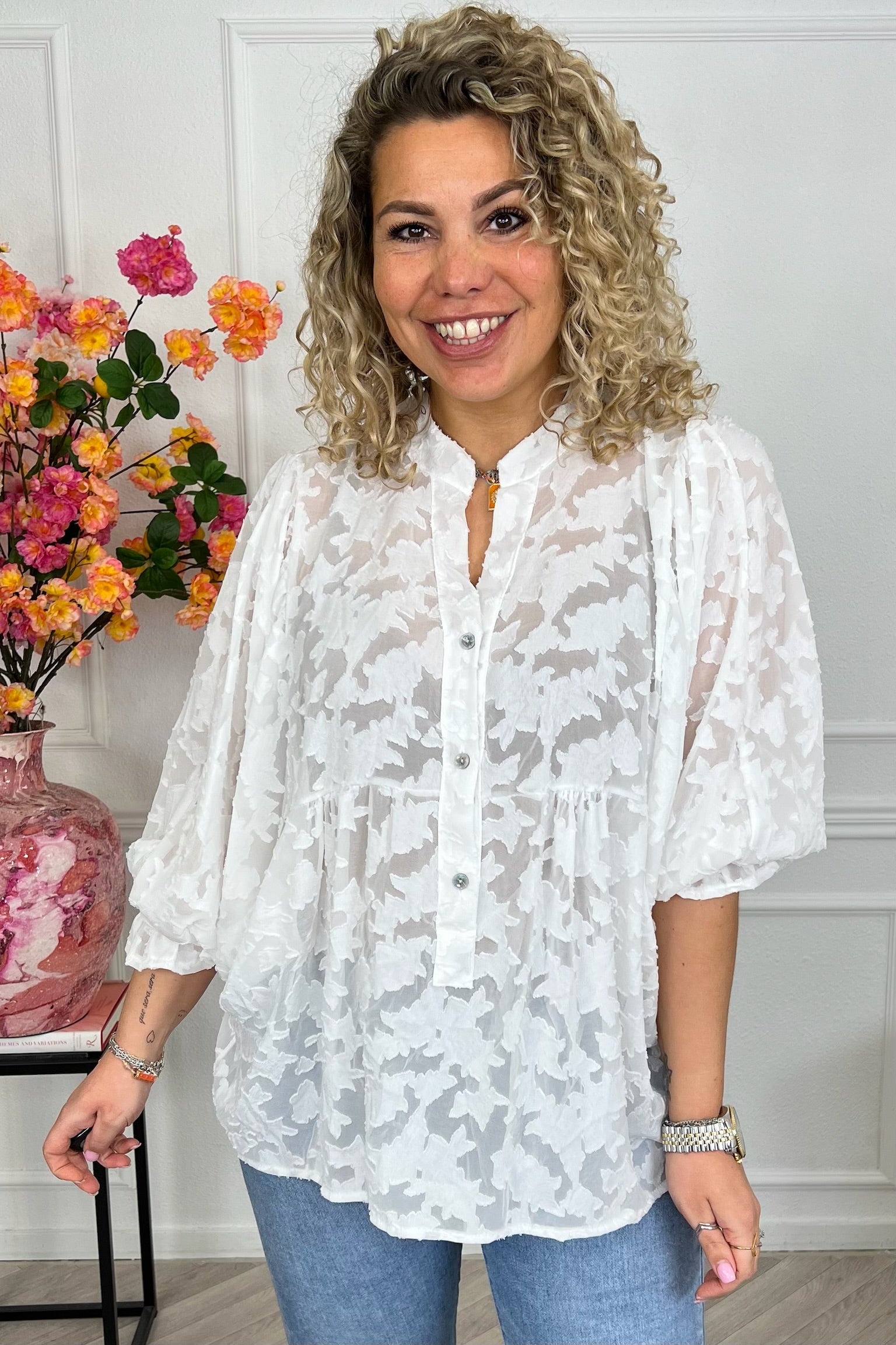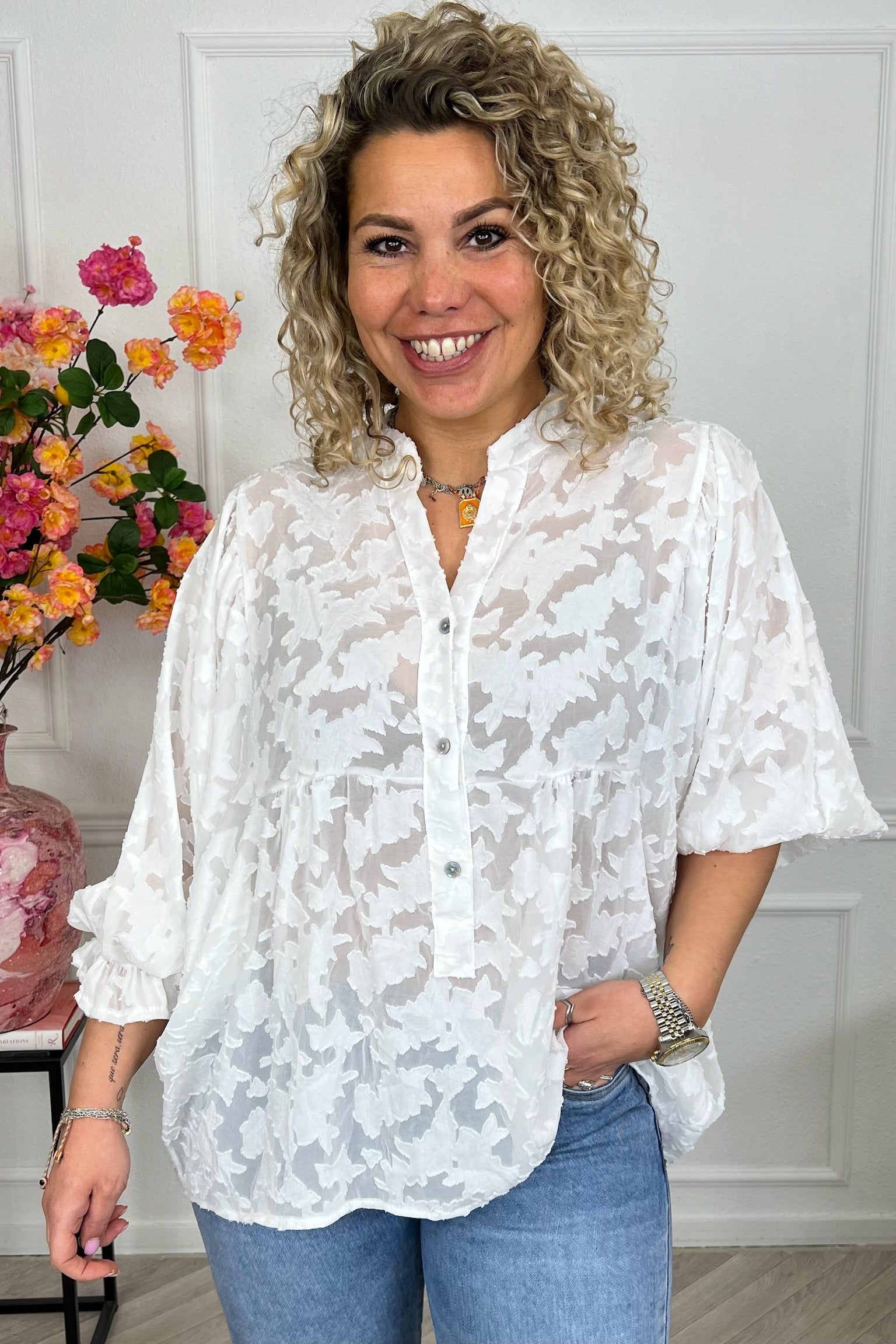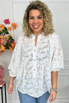 Sheer Leaves Blouse - White