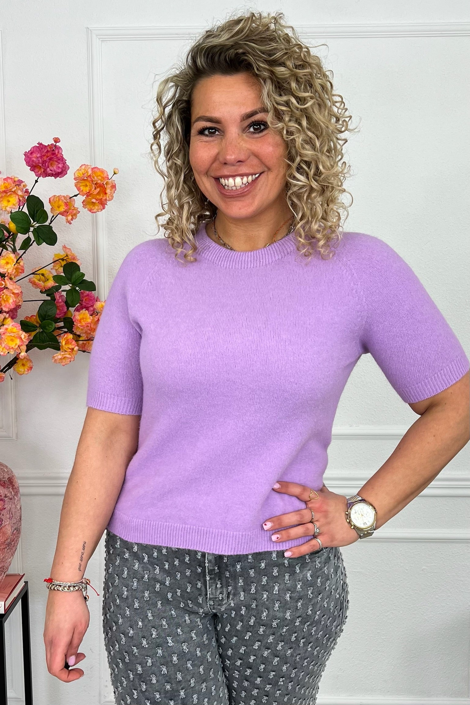 Deze prachtige spring sweater met kort mouwtje zit bijzonder comfy en ook nog eens super stylish. Combineer hem met een leuke jeans! Shop hem in Lila!