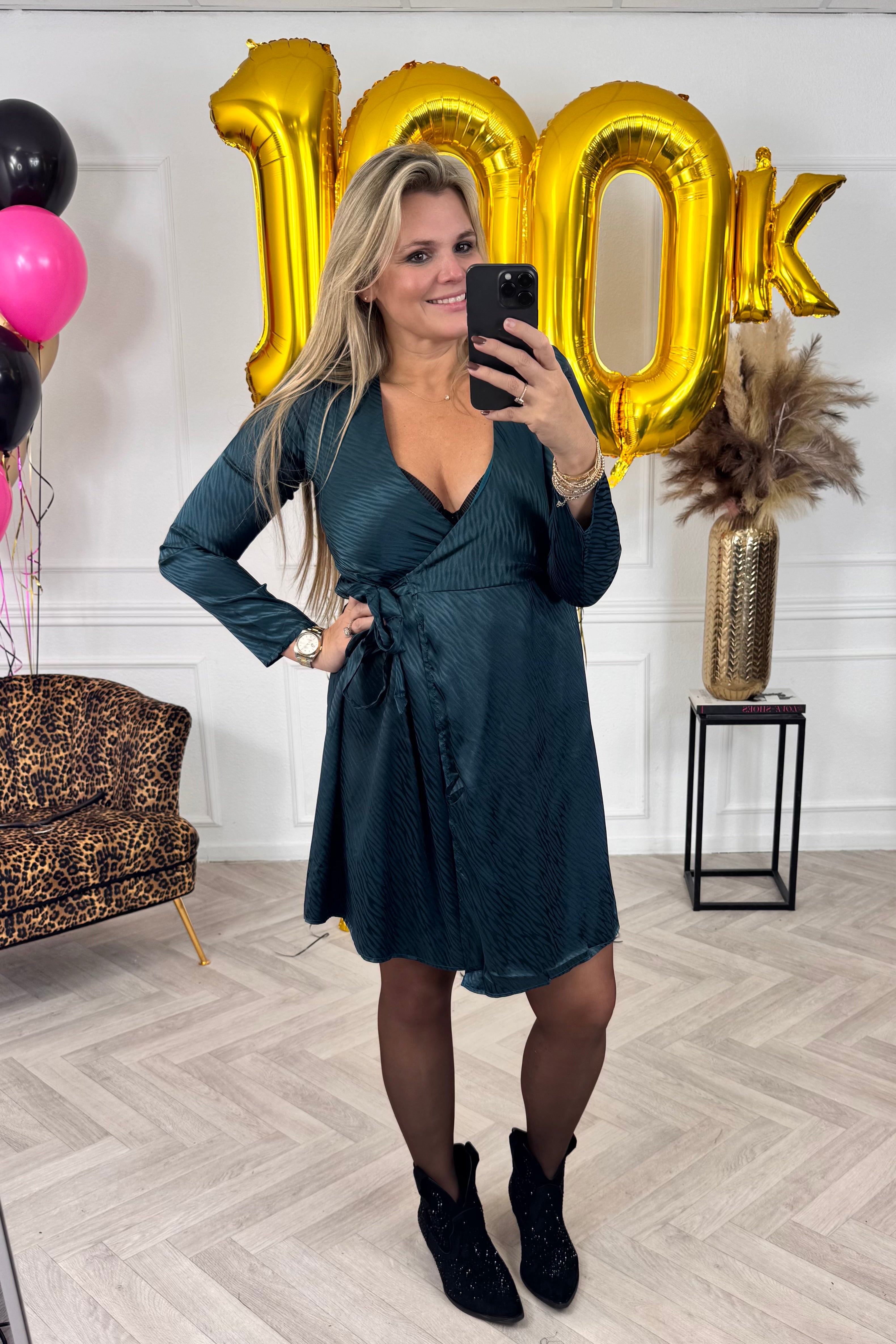 Een super draagbare jurk voor iedere gelegenheid! Shop de silk striped wrap dress nu in green.