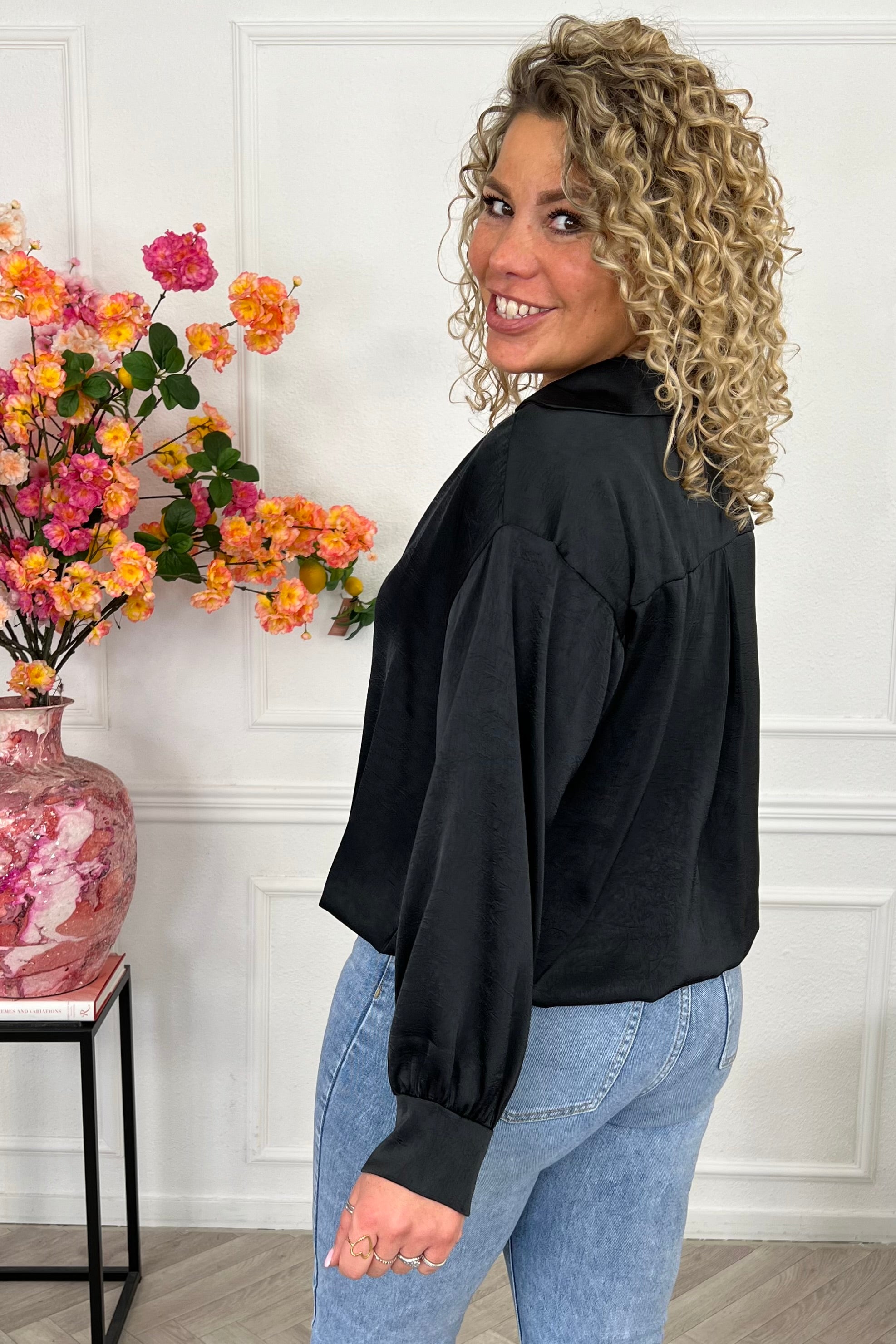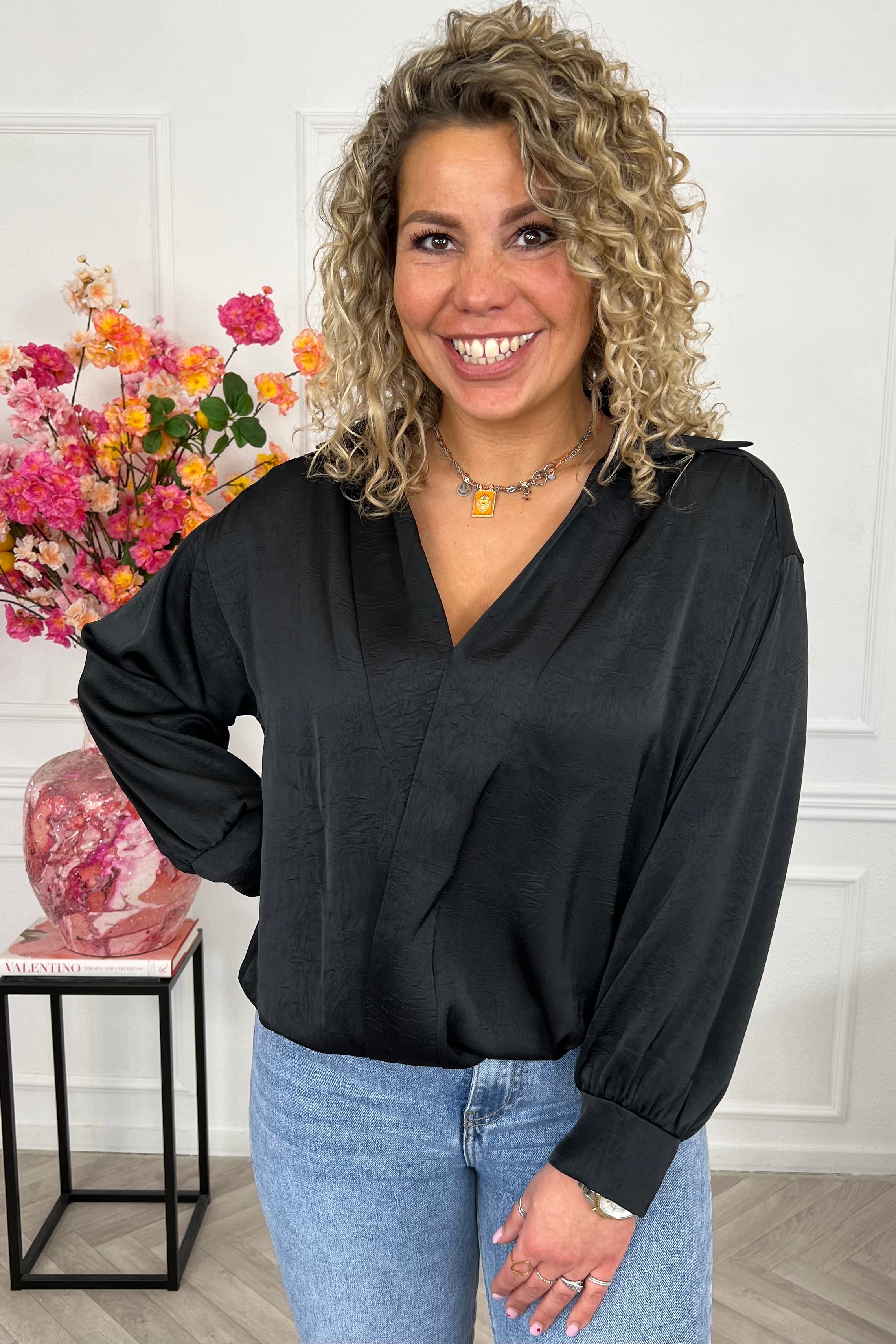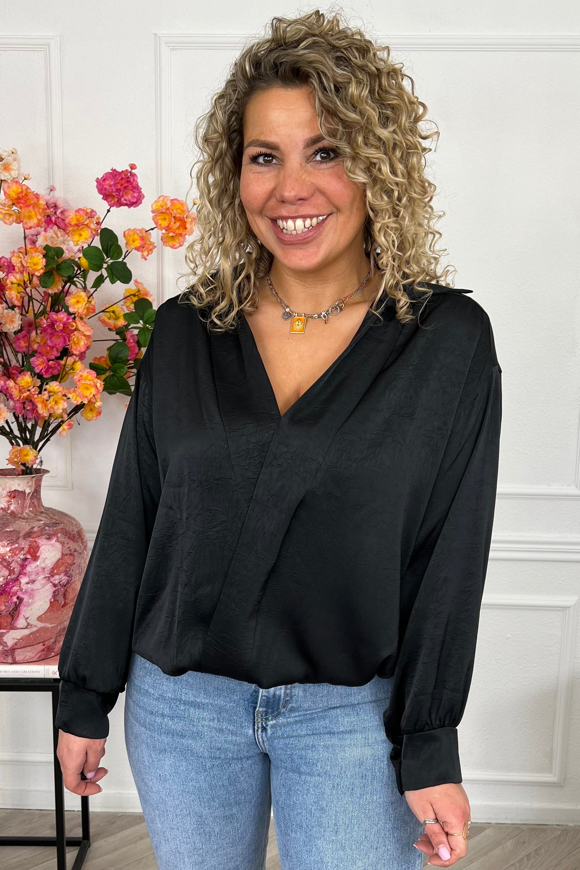 Wat een fijne top is dit, zacht en kleurig! Wrap hem om en je bent er klaar voor: shop hem in black!