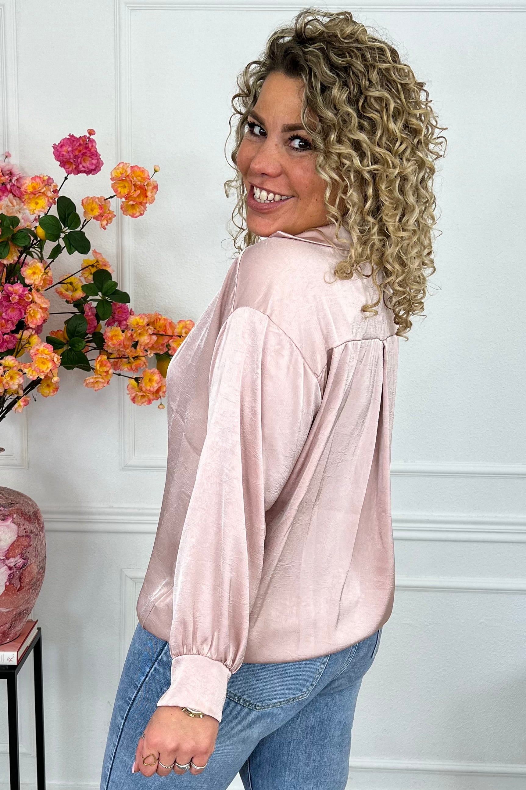 Silky V Neck Wrap Top - Old Pink