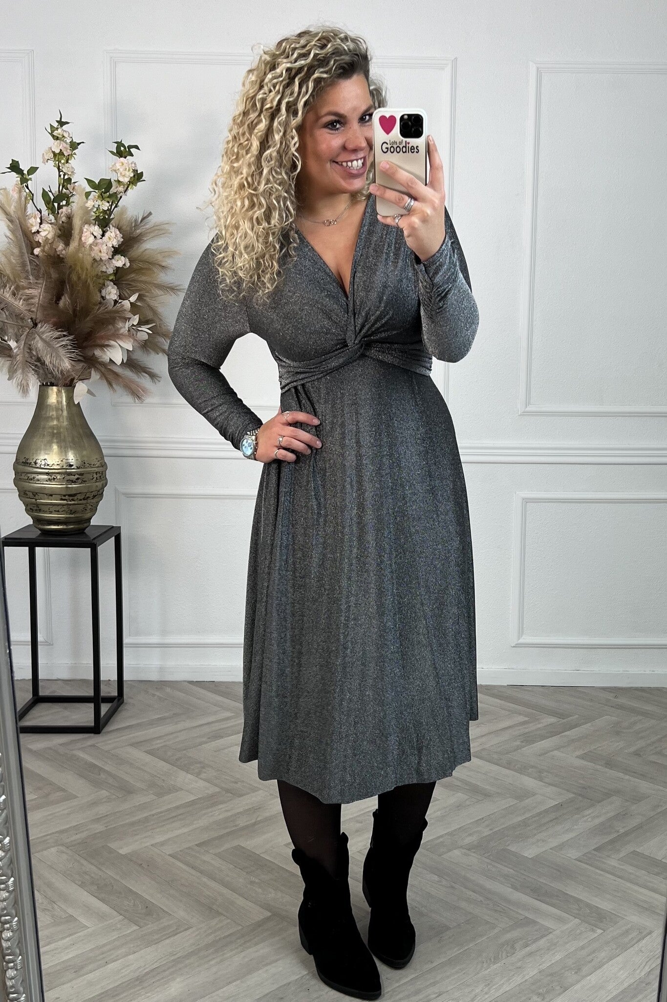 Onze bestseller van vorig jaar is terug, nu van een wat fijnere soepelere stof! De jurk heeft een mooi knotted detail en een plissé rok en lange mouwtjes!