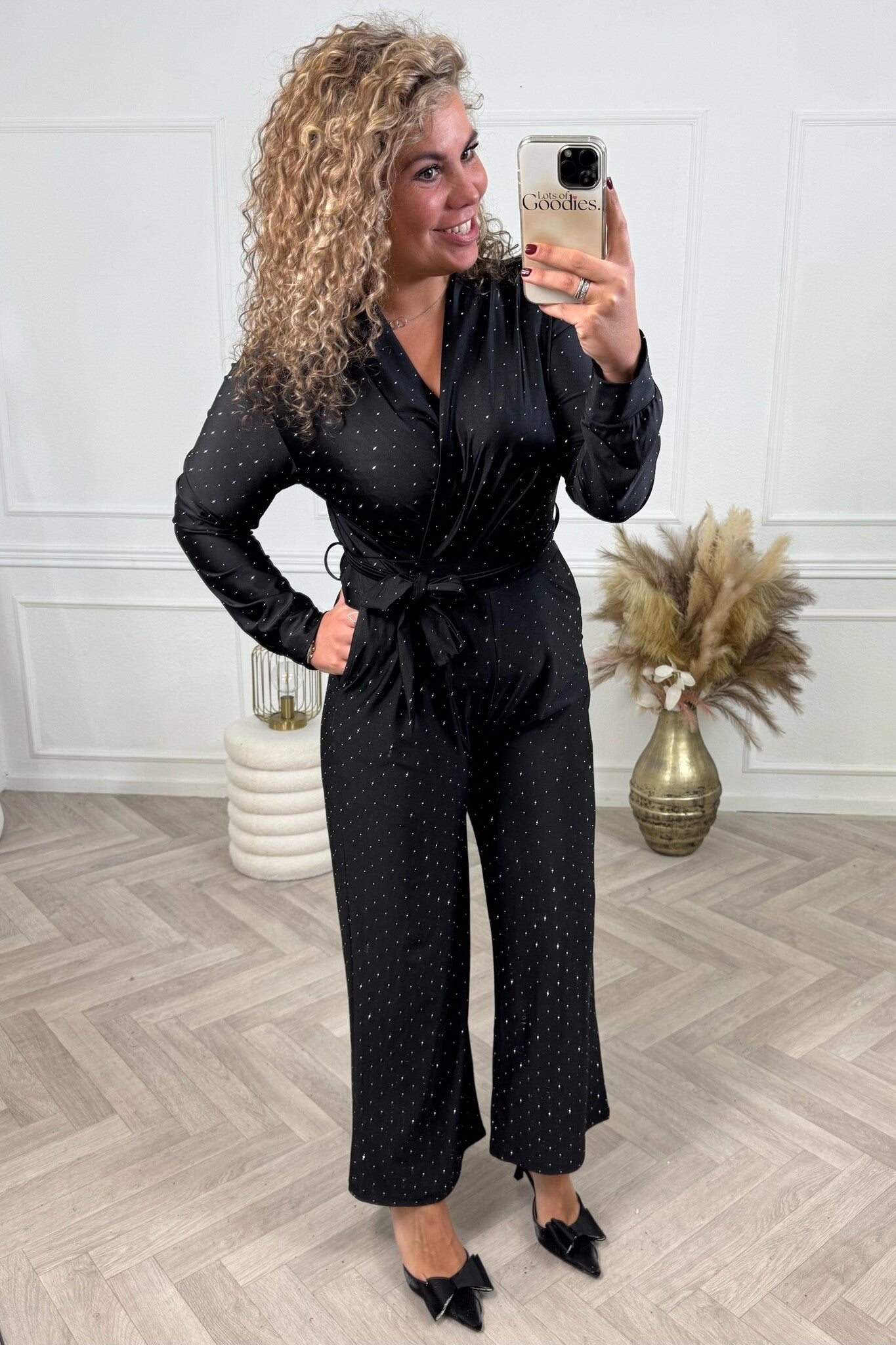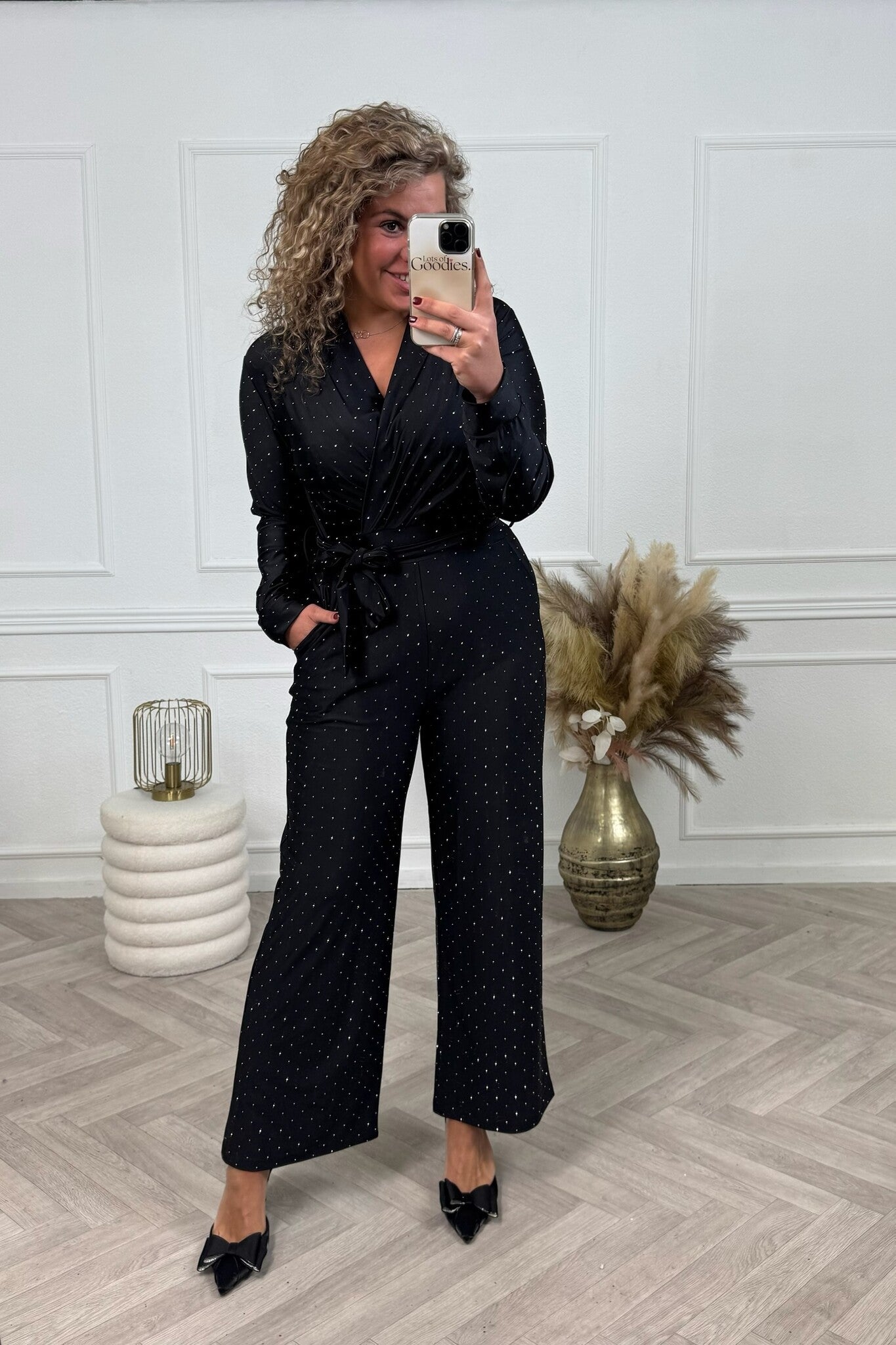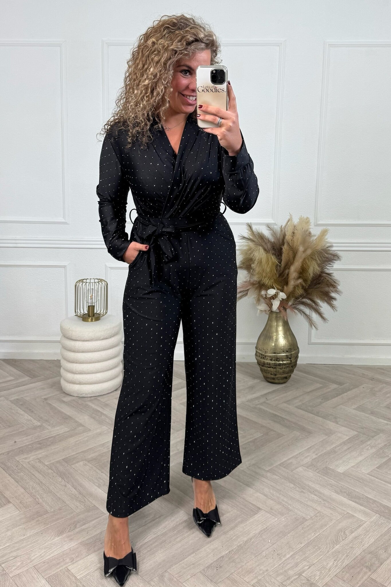 Deze supermooie sparkle jumpsuit met lange mouwen is perfect voor een feestje! Shop hem nu in black.