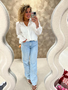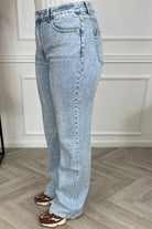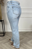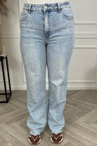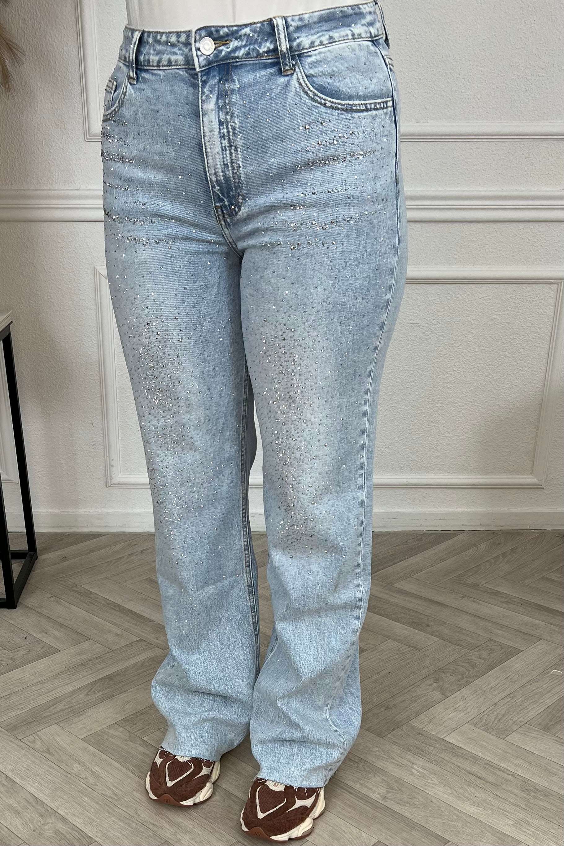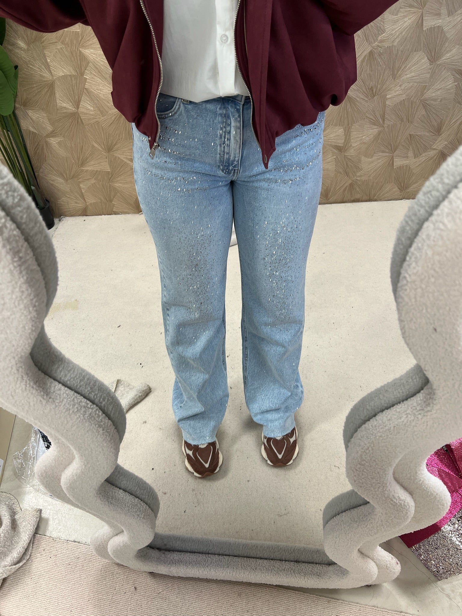 Deze jeans valt Tall met een binnenbeenlengte van 86cm! De broek heeft glitters over de hele broek! Shop de stretch glitter tall jeans nu snel in light blue! Je kunt de broek op lengte afknippen!