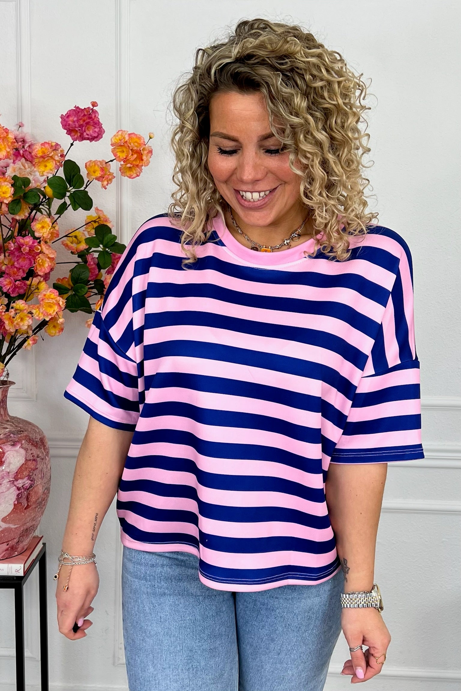 Dit heerlijke gestreepte shirt shop je in de vrolijkste kleurtjes, zoals blue/light pink!