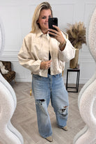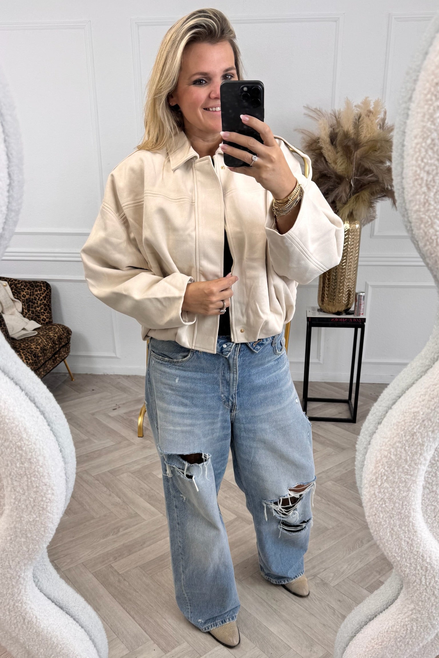 Deze mooie suedine bomber is perfect voor deze tijd van het jaar! Shop hem in beige!