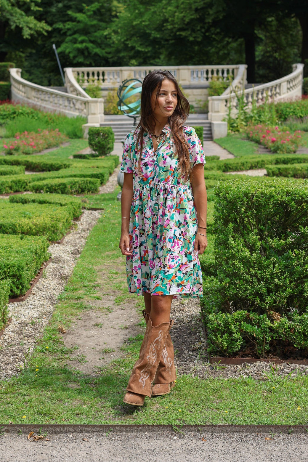 Deze prachtige jurk met een swirl art print shop je nu nieuw online, shop hem nu in green!