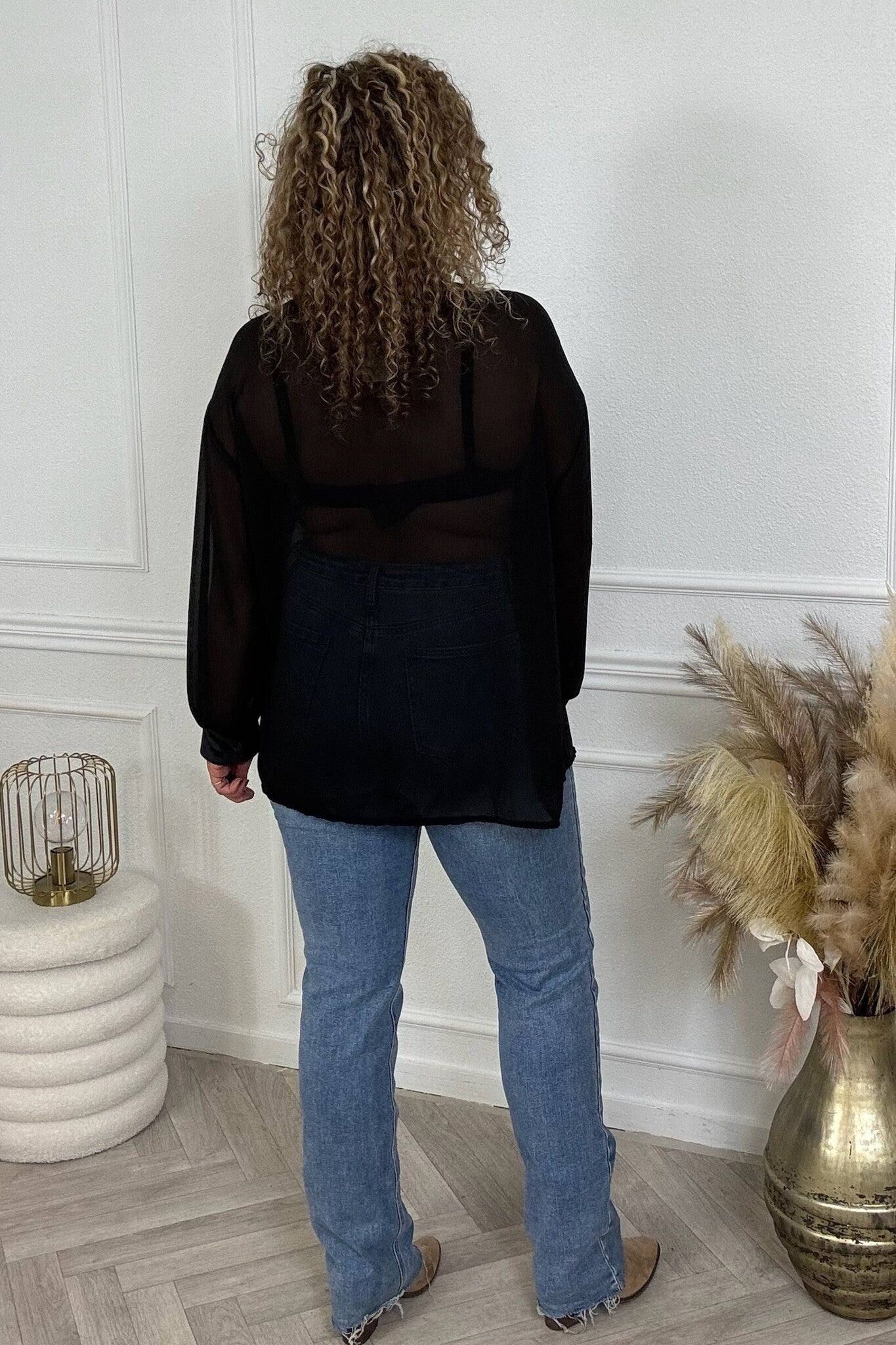 Deze prachtige velvet blouse heeft de ultieme strik, prachtig groot en om de hals. Shop deze prachtige feestelijke blouse in black!