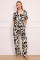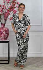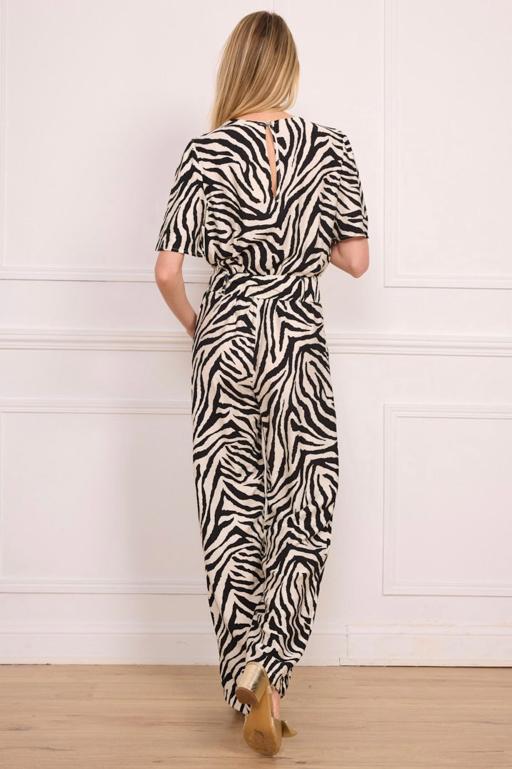 Een supermooi v-hals zebra jumpsuit, we love it! Met korte mouwen en een ceintuur. Shop hem nu in black!