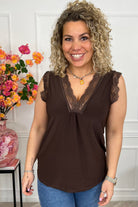 Heerlijke zomerse top met lace details, gemaakt van 100% viscose en ideaal voor ergens onder of lekker in de zomer! Shop hem in brown!