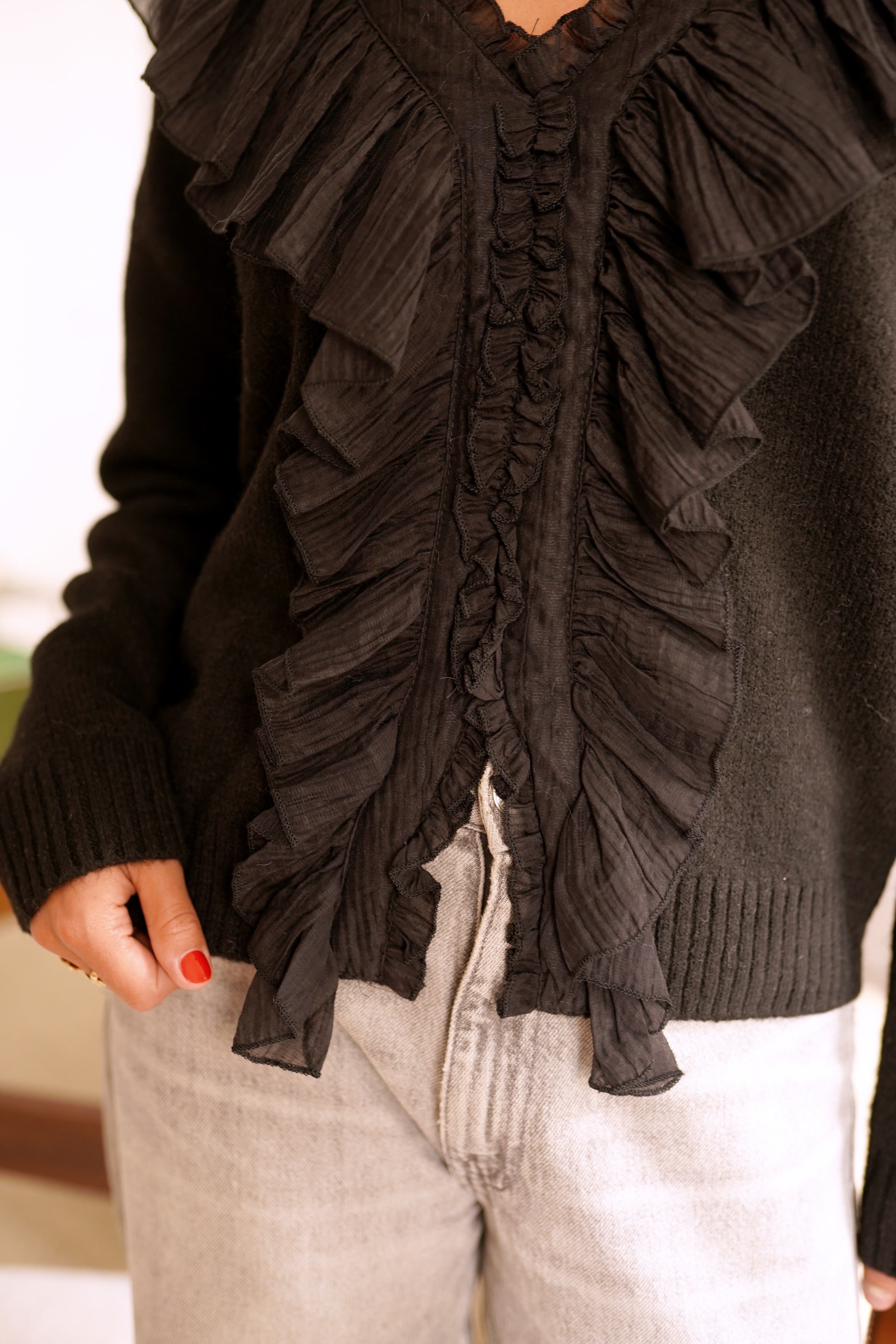 Deze amazing sweater heeft een leuk ruffle detail, so cute! Shop hem nu in black.
