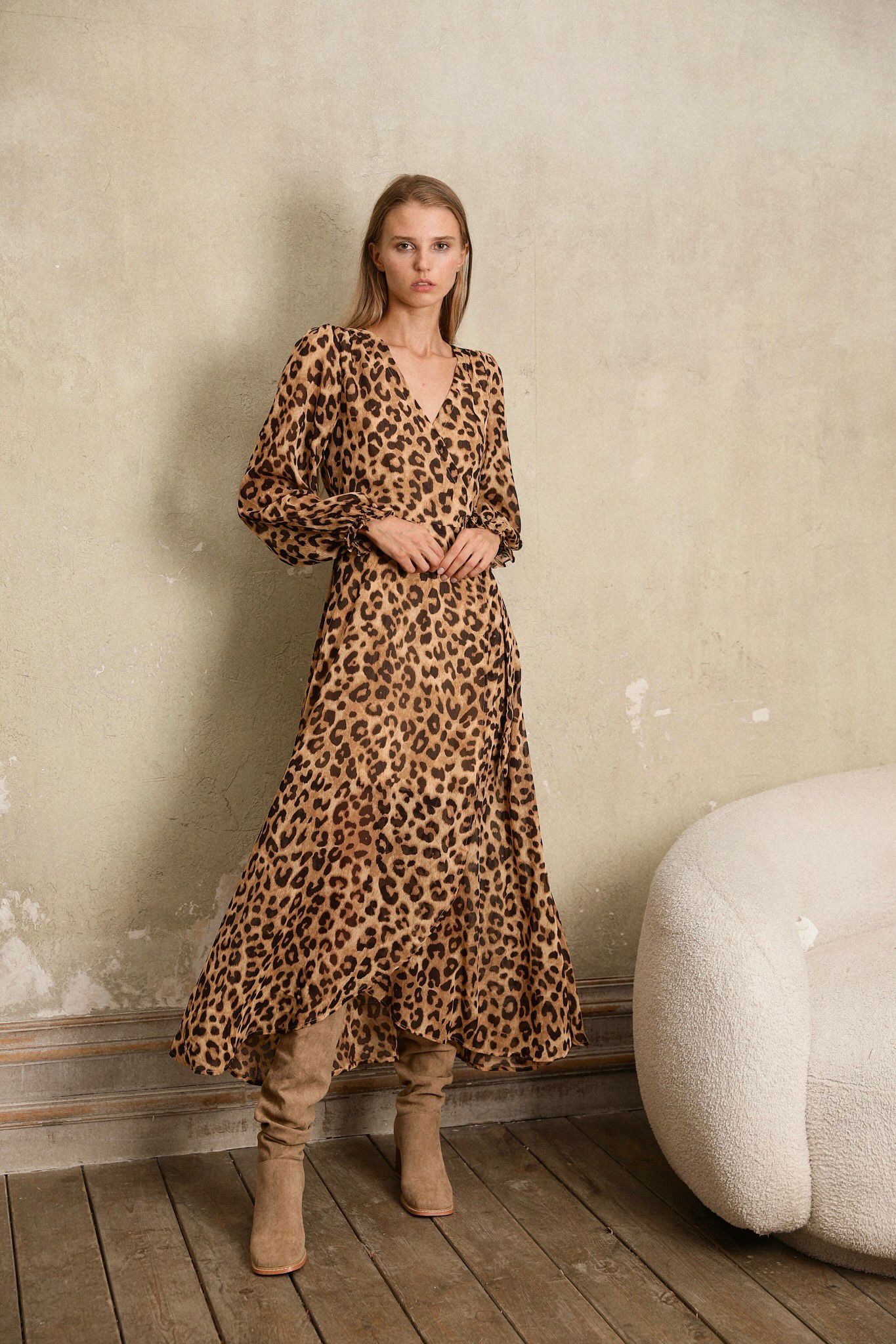 Een prachtige lange wrap jurk met printje, wat wil je nog meer? Shop daarom nu snel deze maxi dress in leopard!